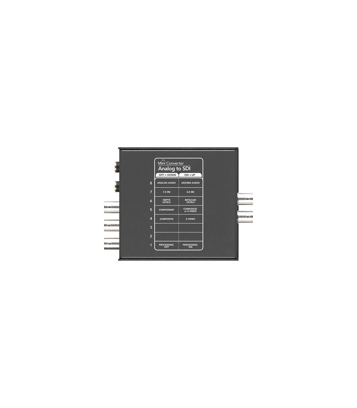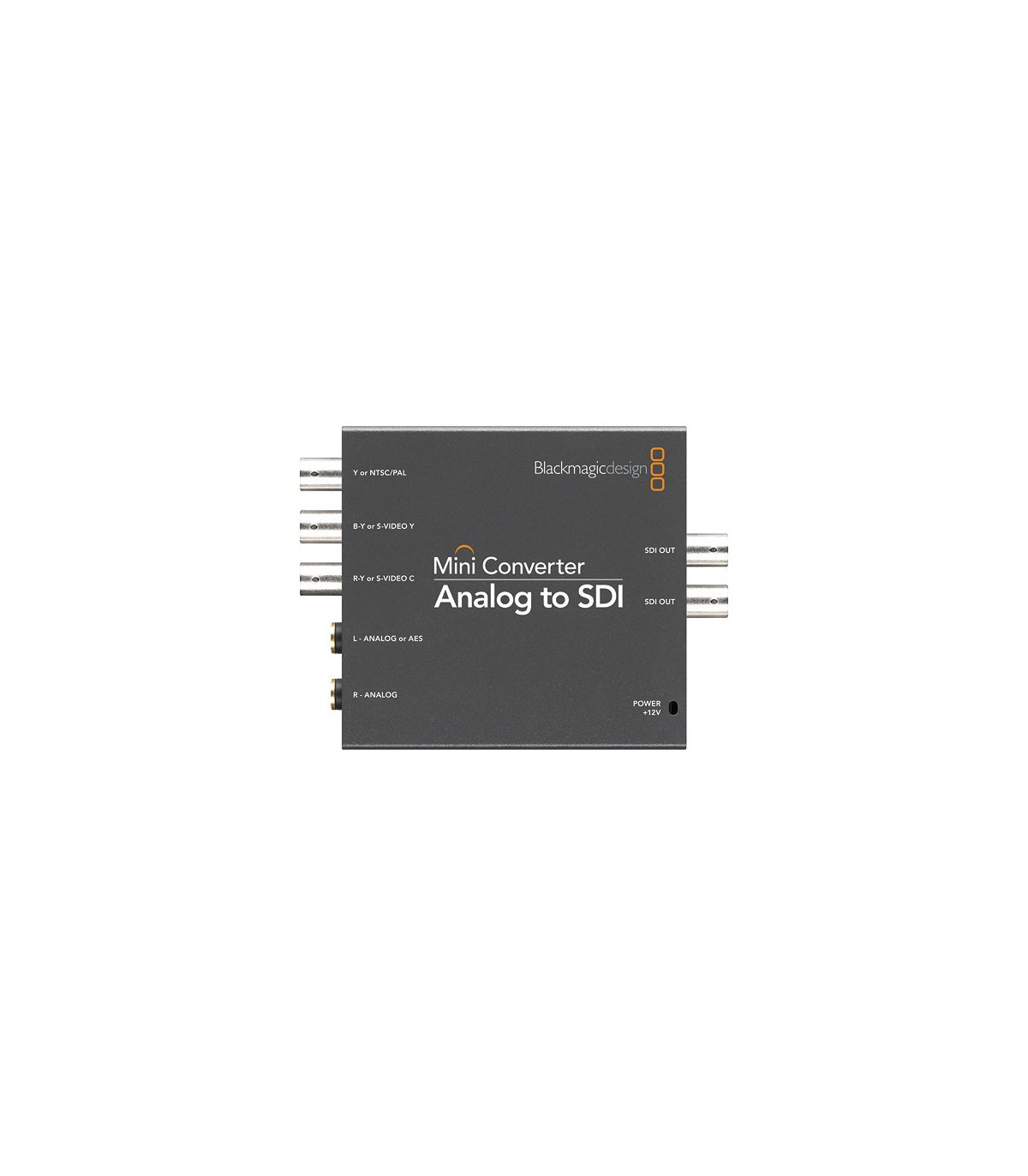مبدل Analog to SDI بلک مجیک دیزاین وسیلهای کوچک و کارآمد جهت دریافت سیگنالهای آنالوگ تصویر از درگاه کامپوننت، کامپوزیت NTSC/PAL و S-video و ارسال آن به خروجی SDI میباشد که کاربر را قادر میسازد سیگنالهای آنالوگ صوتی و تصویری دریافتی از طریق دوربینهای HDV ، بتاکم SP، VHS، گیرنده تلویزیونی و هر منبع دیگری را به سیگنال دیجیتال تبدیل نماید. امکان انتقال جداگانهی صدا از ورودی آنالوگ و یا متوازن AES/EBU نیز از طریق این مبدل موجود است.