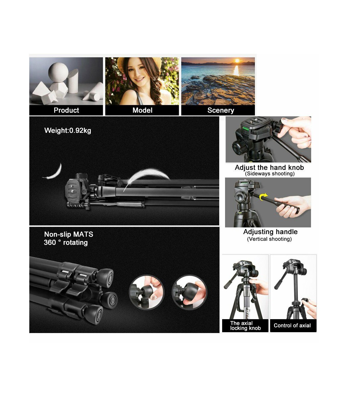 سه پایه عکاسی Weifeng مدل WT-3520 یک محصول کاربردی برای تمامی عکاسان و فیلمبرداران است. این سری از سه پایه های فوق سبک و کوچک با هدف حمل و نقل آسان طراحی شده اند و تا 3 کیلوگرم تحمل وزن دارند. در نتیجه می توان بیشتر دوربین ها را به همراه یک لنز کوچک بر روی آن ها قرار داد. هد این سه پایه از نوع سه طرفه پن هد است و قابلیت چرخش 360 درجه ای آن برای عکاسی خلاقانه و فیلمبرداری کاملا مناسب است. ساز و ار قفل شدن پایه ها از نوع قفل زبانه دار است. برای اطمینان از نحوه قرارگیری دوربین بر روی سه پایه نیز یک تراز بر روی بدنه این محصول تعبیه شده است. طول این سه پایه در حالت جمع شده تنها 55 سانتی متر است و حداکثر ارتفاع آن به 140 سانتی متر می رسد. به همراه این محصول یک کیف حمل و نقل نیز ارائه شده است که جابجایی آن را ساده تر می کند. در قسمت پایه ها نیز از سری های لاستیکی استفاده شده که به قرارگیری محکم سه پایه بر روی انواع سطوح کمک می کند و مانع لغزش های ناخواسته می شود. در نتیجه می توان از این سه پایه برای عکاسی و فیلمبرداری هایی که نیاز به ثابت کردن دوربین به مدت طولانی دارند با خیال راحت استفاده کرد.