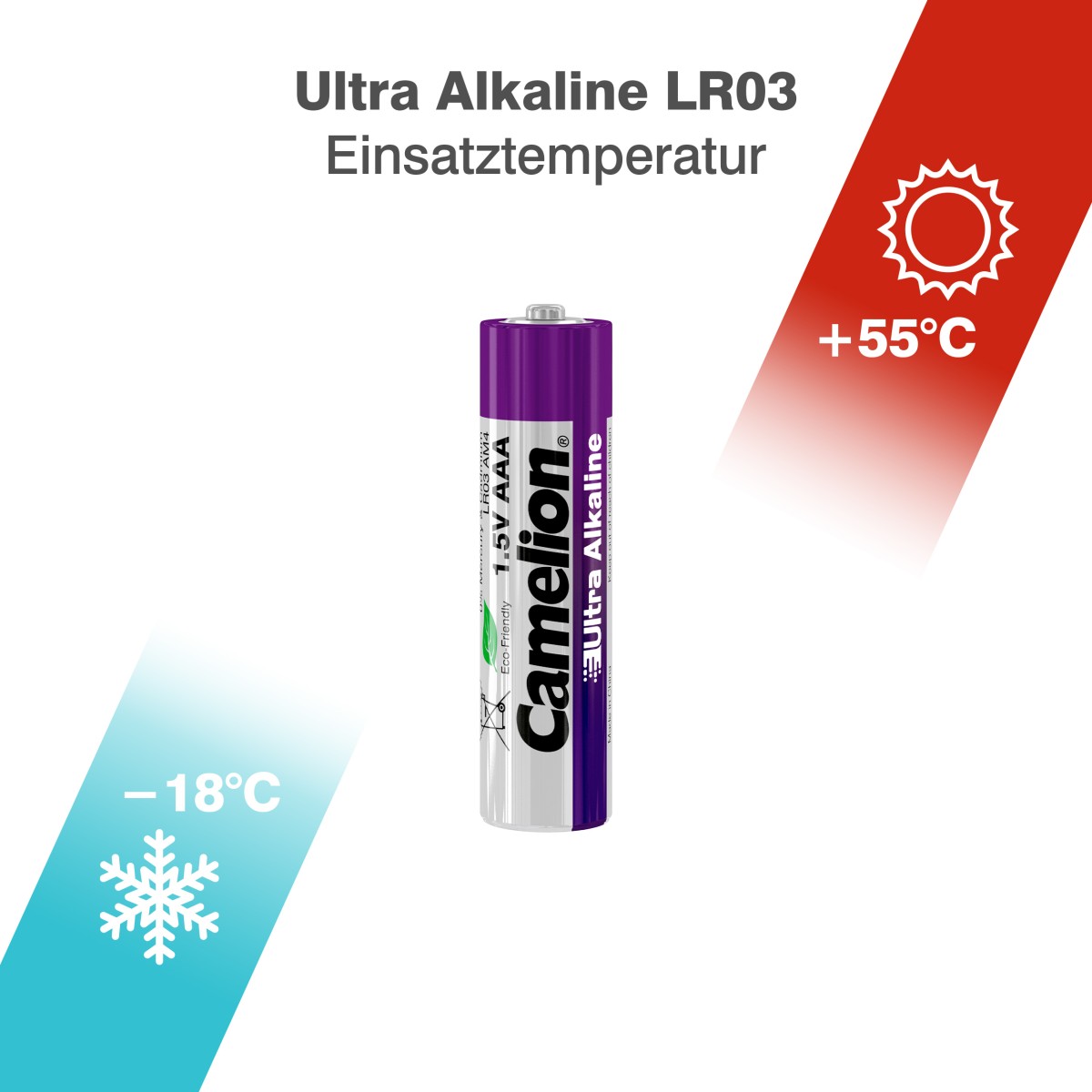 Camelion Ultra Alkaline نهتنها در شرایط معمولی عملکرد خوبی دارد، بلکه در دماهای بسیار بالا یا پایین نیز عملکرد ولتاژ پایداری را ارائه میدهد. این ویژگی، استفاده از آنها را در فضای باز، سفر، یا محیطهای صنعتی و آزمایشگاهی امکانپذیر و مؤثر میسازد. توانایی مقابله با تغییرات دمایی و فشار بار، باعث میشود این باتریها در دستهی محصولات حرفهای قرار گیرند.