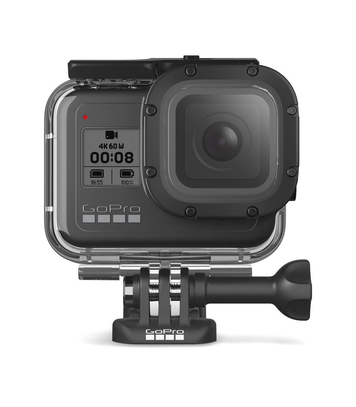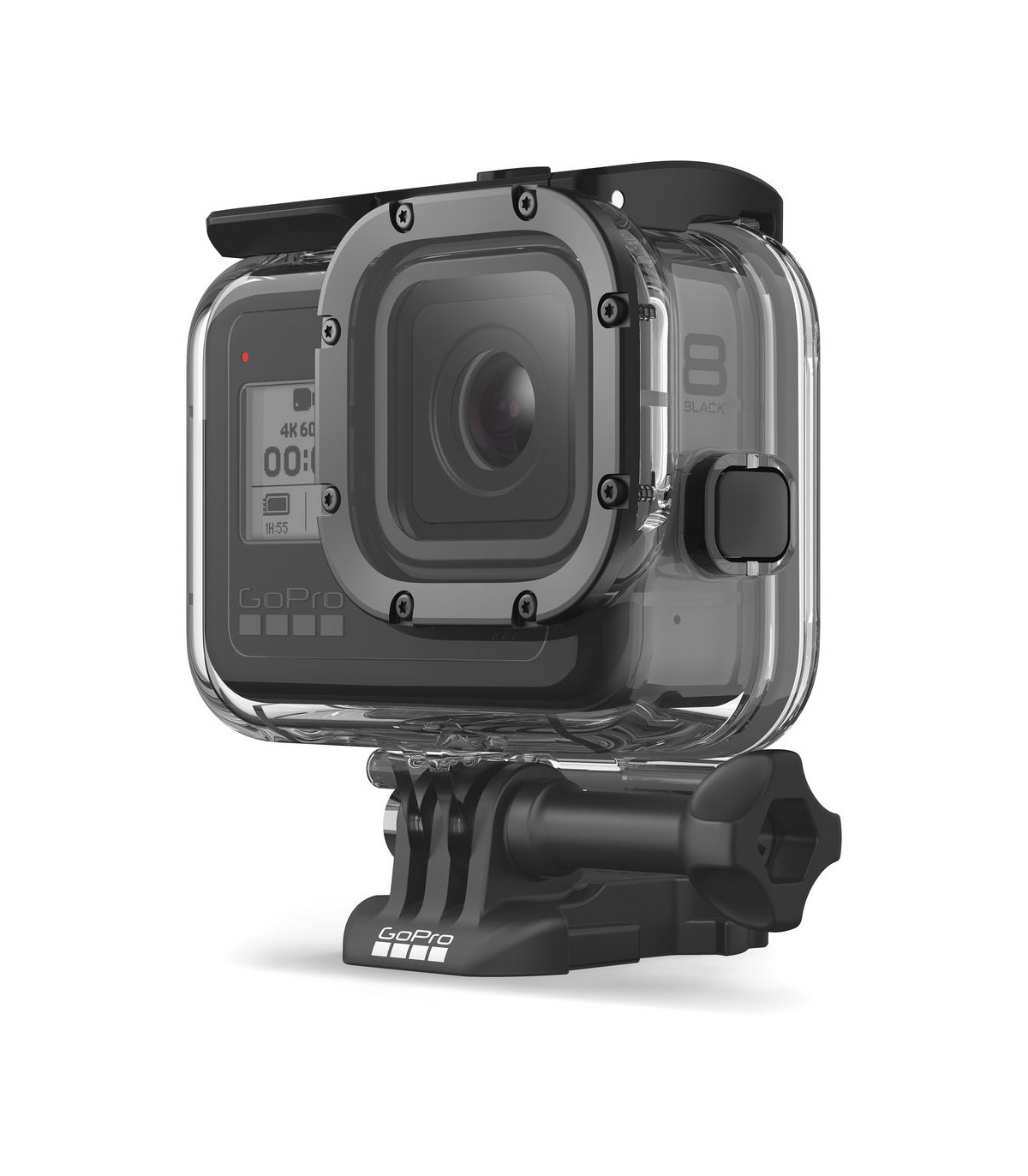 دوربین گو پرو HERO8 Black به خودی خود ضد آب است، اما این کاور سخت هر چیزی که به دوربین شما برخورد کند تحمل می‌کند. همچنین از کثیف شدن دوربین و چسبیدن ذرات معلق در هوا به دوربین هنگام ورزش‌هایی که سرعت بالایی دارند، محافظت می‌کند. علاوه براین، این کاور باعث می‌شود که گو پرو شما تا 60 متر زیر آب ضد آب شود و بتوانید از آن در قواصی‌‌های عمیق استفاده کنید.
