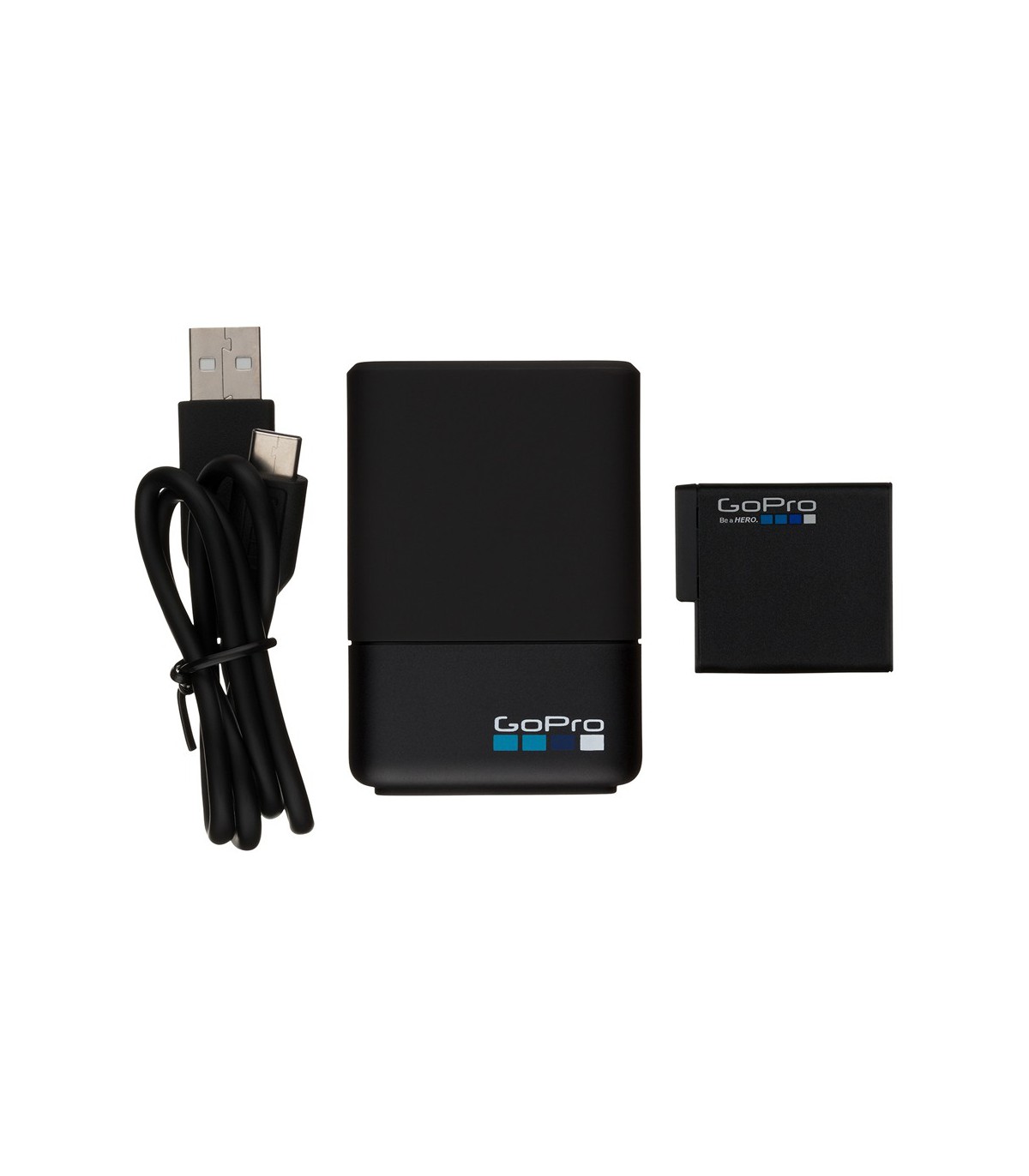 با استفاده از این شارژر میتوانید تا دو باتری دوربین Hero 5 Black را بهصورت همزمان شارژ کنید. همچنین در پکیج این شارژر یک باتری اضافی نیز عرضه شده است تا همراه با باتری اصلی خود دوربین، ۲ باتری در اختیار داشته باشید. میتوانید خیلی راحت Dual Battery Charger را با اتصال کابل USB برای شارژ دو باتری مورد استفاده قرار دهید.