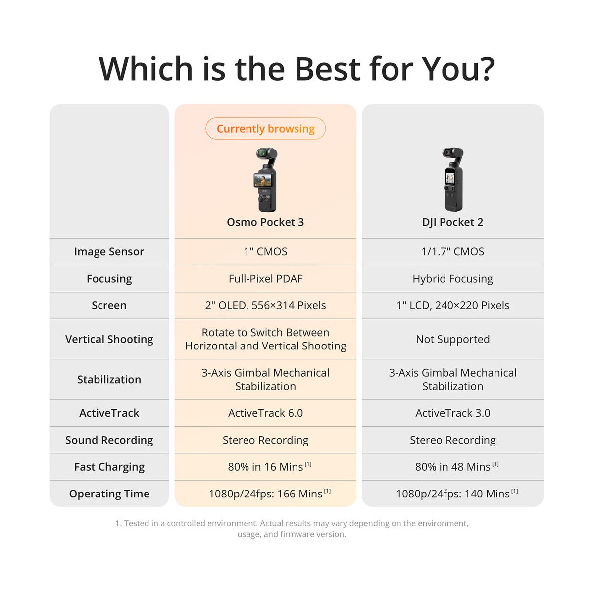 گیمبال دوربیندار اسمو پاکت ۳ امکان فیلمبرداری آسان و بدون لرزش و پایش تصویر بر روی نمایشگر ۲ اینچی لمسی را در اختیار گذاشته است. این گیمبال مجهز به دوربین، عملکرد بسیار ایدهآلی در فیلمبرداری در موقعیتهای پرتحرک به همراه دارد. میتوان از اسمو پاکت ۳ در تصویربرداری از صحنههای ورزشی یا حتی برای ثبت خاطرات خانوادگی با کیفیتی بالا استفاده کرد. اسمو موبایل ۳ دارای یک درگاه کارت حافظه microSD برای ذخیرهسازی داخلی و باتری قابل شارژ با دوام ۱۶۶ دقیقهای است. این محصول همچنین از وای-فای و بلوتوث نیز پشتیبانی میکند.