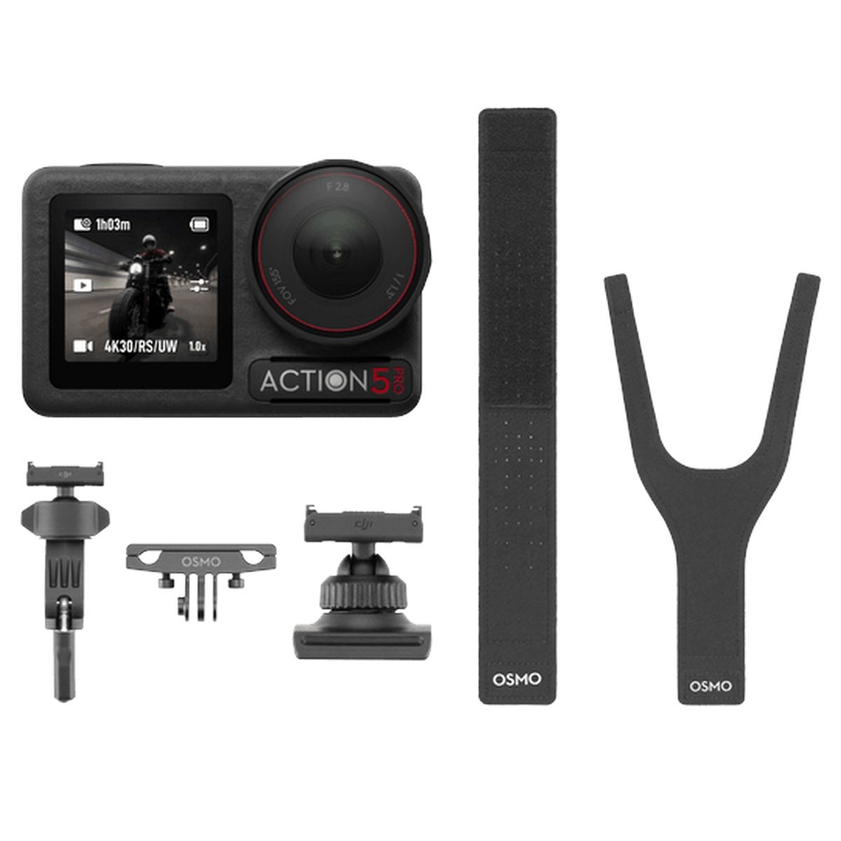 | محتویات جعبه | اسمو اکشن ۵ پرو، باتری، فریم، کیت لوازم جانبی دوچرخه سواری جادهای، پایه آداپتور، پایه خمیده، پیچ اسمو، کابل تایپ سی به تایپ سی، محافظ لنز پلاستیکی، پوشش شیشهای لنز، پدهای ضد لغزش و استیکرهای DJI |