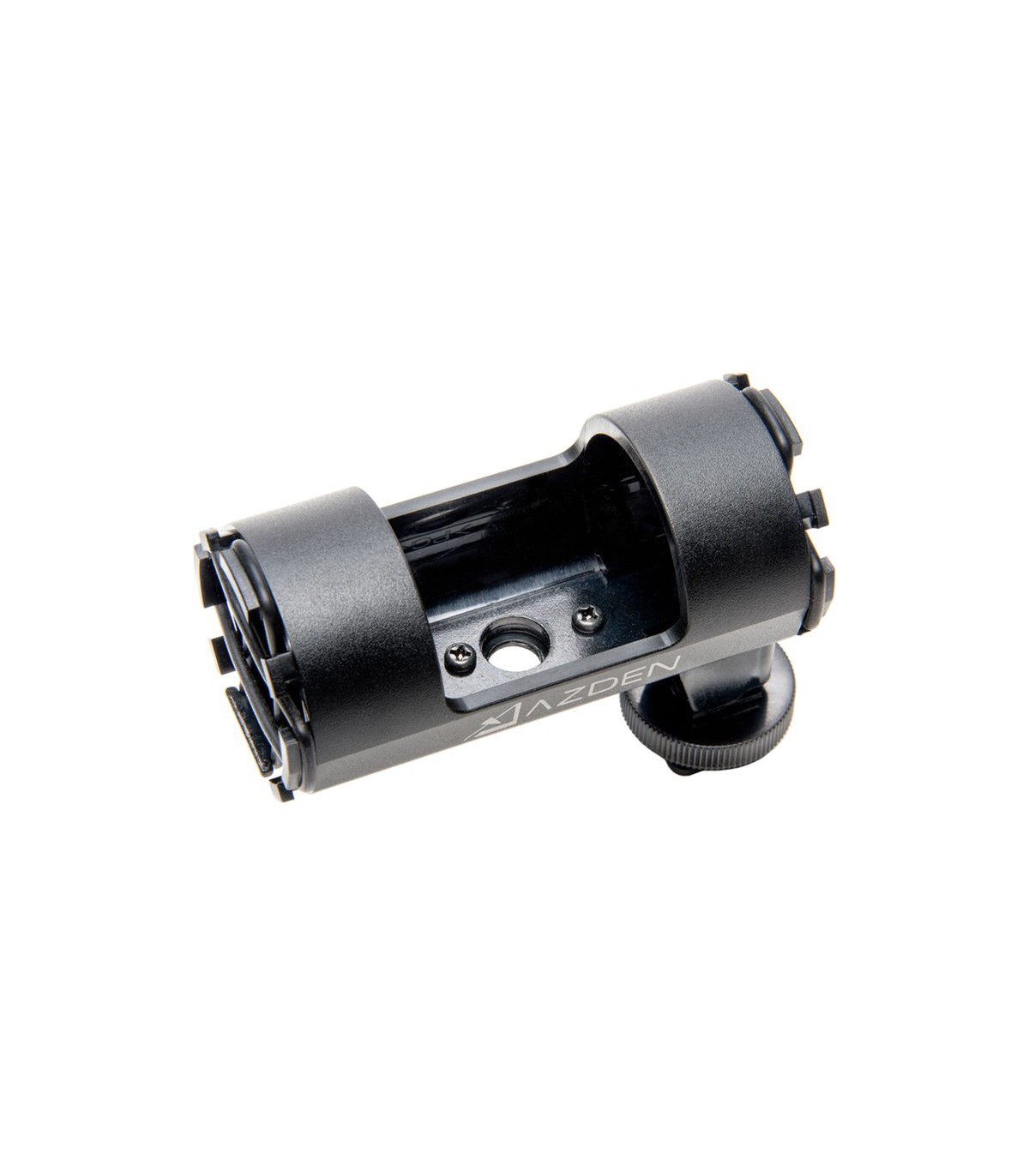 Azden SMH-1 یک نگهدارنده میکروفن است که قابلیت اتصال میکروفونهای شاتگان به کفشک دوربین را فراهم میکند. SMH-1 با استفاده از مکانیزمی ساده و تنها با استفاده از چند بند لاستیکی علاوه بر اتصال محکم و قابل اطمینان، از لرزشهای میکروفن در هنگام جابهجایی آن جلوگیری میکند تا قادر به ضبط صدایی با کیفیت باشید. در زیر مانت این دستگاه یک پیچ ۳/۸ اینچ تعبیه شده تا بتوانید میکروفن خود را به بوم و یا سهپایه نیز متصل نمایید.