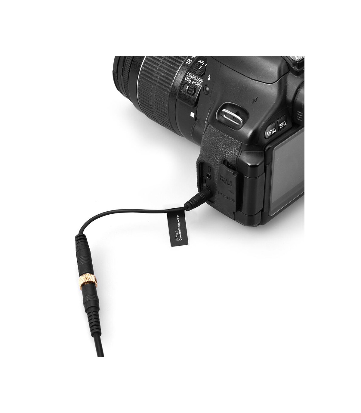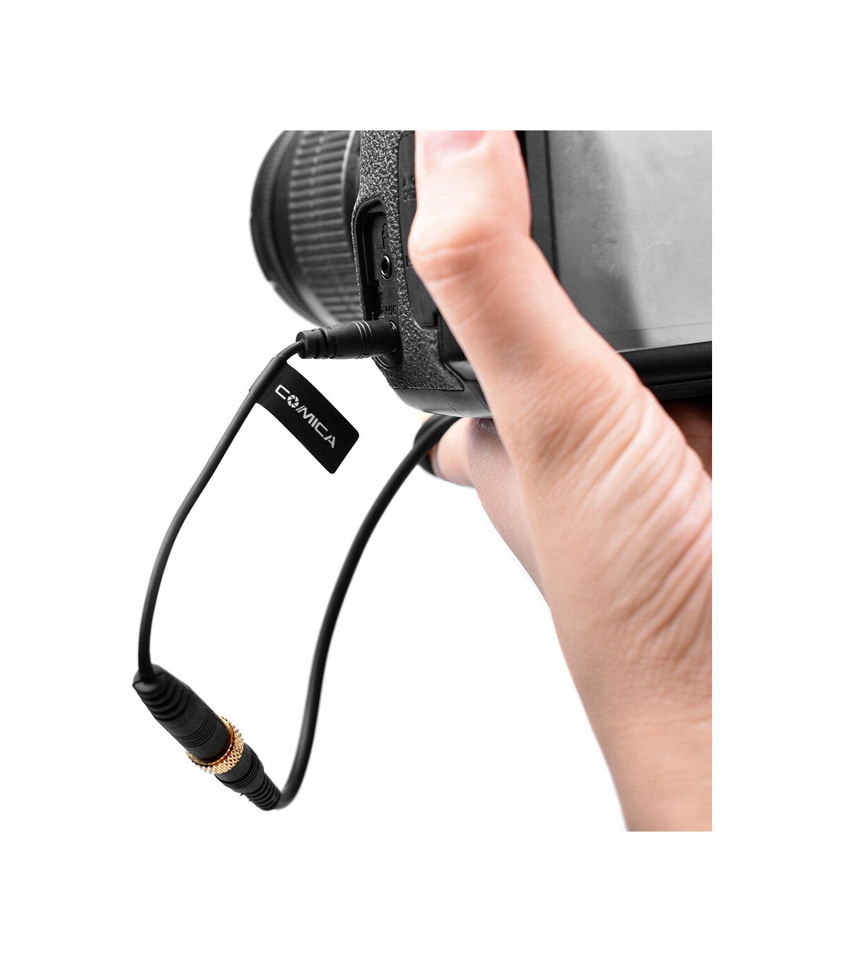 کابل تبدیل کامیکا Comica CVM-CPX برای اتصال میکروفون های دارای جک TRRS 3.5 میلی متری به دوربین با درگاه TRS به کار می رود.