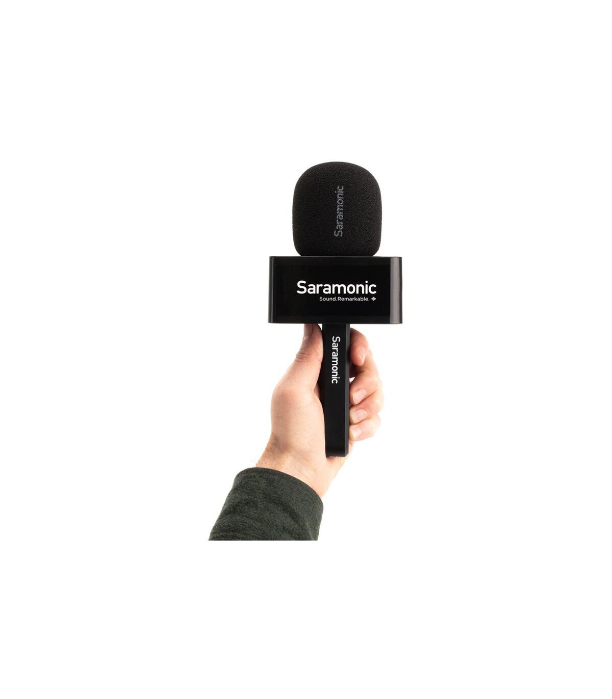 دسته میکروفون بیسیم Saramonic مدل Blink 500 Pro HM فرستنده Blink 500 Pro TX را به یک میکروفون دستی سبک و ارگونومیک تبدیل میکند تا ضبط اخبار، مصاحبه، صدای صحبت کردن افراد و پادکستها راحت و سریع باشد. فرستنده بیسیم به راحتی درون این دسته قرار میگیرد و به لطف باتری داخلی ۱۱۰۰ میلیآمپرساعتی آن، مدت زمان استفاده مداوم از فرستنده دو برابر میشود. برای جفت شدن دسته با فرستنده، تنها فشردن یک دکمه کافیست و نیازی به تنظیمات پیچیده وجود ندارد.