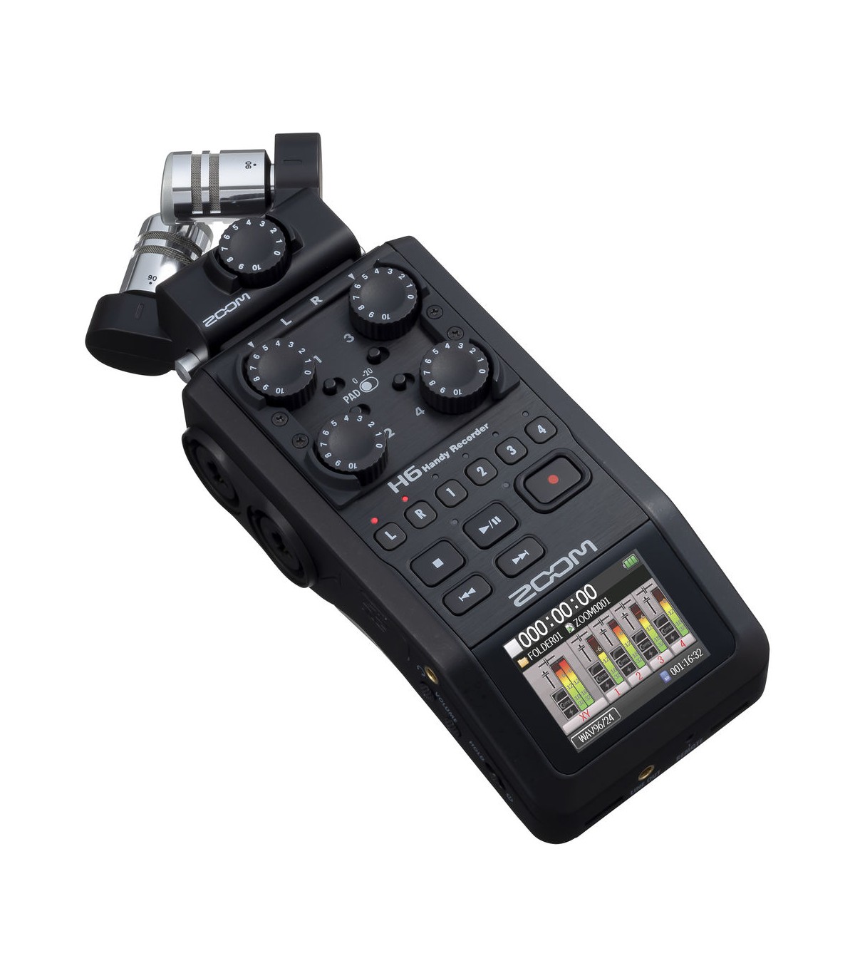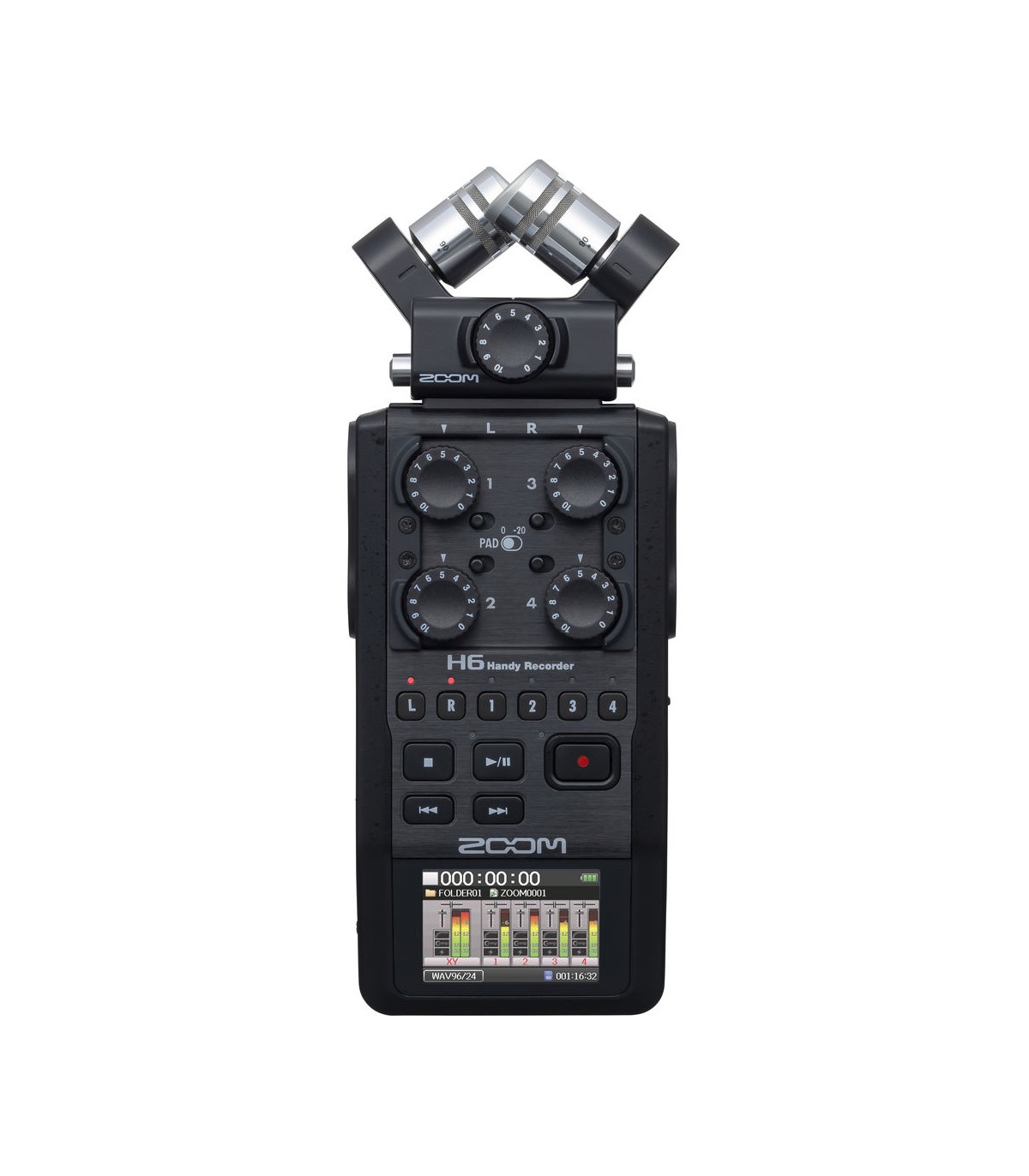 این رکوردر دارای ۴ ورودی XLR یک چهارم اینچی و یک ورودی ۳.۵ میلیمتری بر روی کپسول میکروفون است و میتوانید بر روی آن میکروفونهای کندانسر، منبع صوتی بالانس +4 دسیبلی و یا سازهایی با الکترونیک اکتیو را نصب کنید. امکان روشن کردن فانتوم پاور ۱۲، ۲۴ و ۴۸ ولتی برای استفاده از ورودیهای XLR و همچنین جریان ۲.۵ ولتی برای جک ۳.۵ میلیمتری نیز وجود دارد. به هرحال اگر میخواهید از میکروفونهای کندانسر استودیویی استفاده کنید یا از گیرندههای بیسیم و یا میکروفونهای یقهای و شاتگان برای ضبط یک مصاحبه استفاده کنید، پری آمپ موجود در رکوردر H6 All Black توانایی ضبط با نویز بسیار پایین (-120 dB EIN) را برایتان فراهم کرده است.