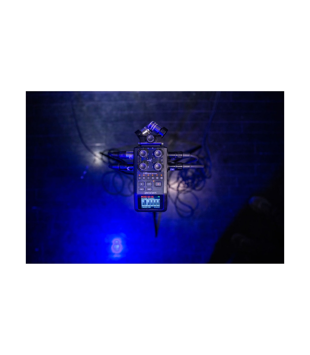 رکوردر H6 All black ۶ لاین رکورد با رزولوشن صوتی 24-bit/96 kHz دارد. میتوانید از این لاینها به صورت همزمان ورودی بگیرید و ورودیها را ضبط کنید و یا لایههای جداگانه ضبط کنید و روی هم میکس کنید. همچنین سطح صدای هرکدام از لایهها و موقعیت پخش لایههای صدا در پخش استریو را میتوانید تنظیم کنید.