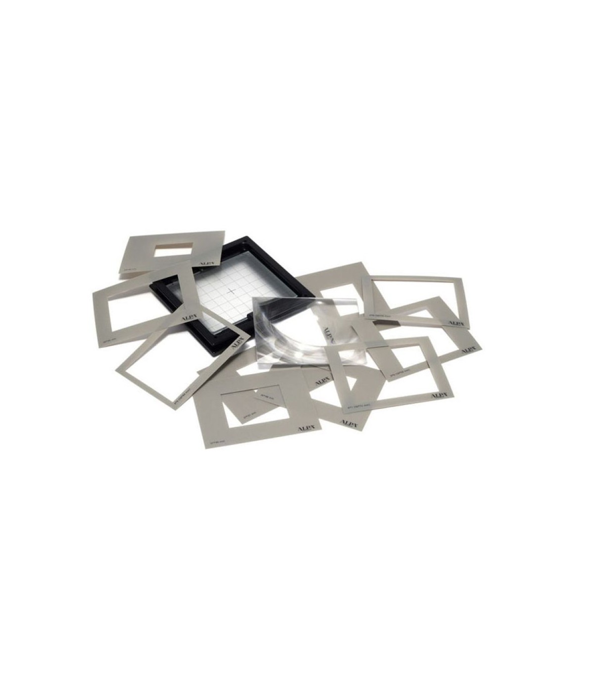 اگر از پخش زنده بکهای دیجیتال (به خصوص بکهای جدید با حسگر CMOS)صرف نظر کنیم، دقیقترین و کارآمدترین ابزار دستیابی به فوکوس و کادربندی، شیشه مات است. شیشه مات برخلاف ظاهر سادهاش، نیازمند دقت ساخت بسیار بالایی است. شیشه مات با تقسیمبندی حرفهای (PGS) آلپا شاید بهترین شیشهمات موجود برای بکهای دیجیتال و دوربینهای تکنیکی باشد. این صفحه در ابعاد 72x90 mm و تقسیمبندی 4mm ارائه میشود که در حالت افقی و عمودی قابل استفاده است و همزمان امکان استفاده برای بک فیلم رول و بک دیجیتال را دارد. همچنین این مجموعه ماسکهای قطعهای مختلف و البته عدسی فرزنل Reflexite را به همراه دارد.