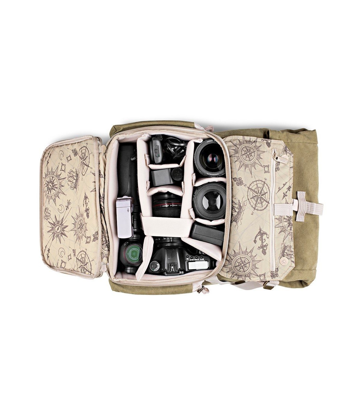 جابجایی دوربین های سایز متوسط مانند کانن 5D Mark IV یا نیکون D810 به همراه لنز متصل 70-200mm f/2.8 در کنار 5 لنز دیگر به سادگی با کیف نشنال جئوگرافیک Earth Explorer NG 5170 امکان پذیر است. به لطف تقسیم کننده های قابل تنظیم این کیف، می توان فضای مناسب برای حمل و نگهداری از یک پهپاد DJI Mavic Pro/Platinum Combo Kit یا DJI Spark را ایجاد کرد. همچنین یک زیپ پشتی نیز برای قرار دادن لپتاپ 15 اینچی یا آیپد نیز وجود دارد. این کیف مجهز به سیستم محافظتی Manfrotto Protection System است تا محتویات کیف همواره در برابر ضربه یا خط و خش ایمن باشند.