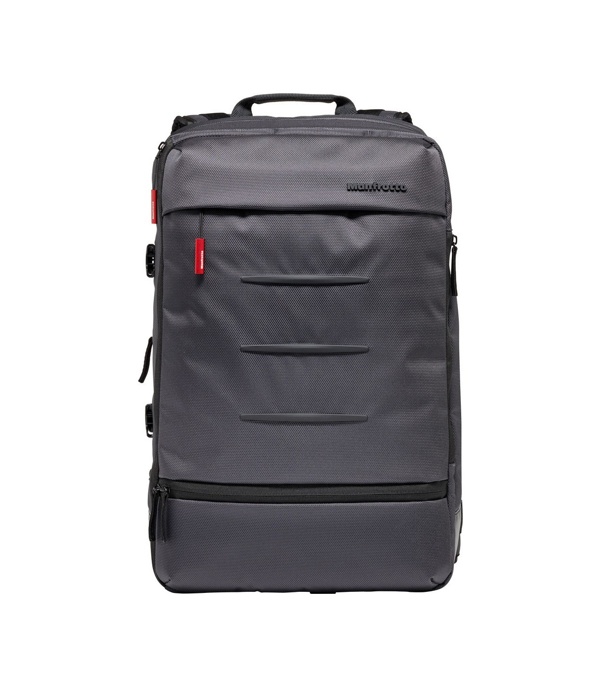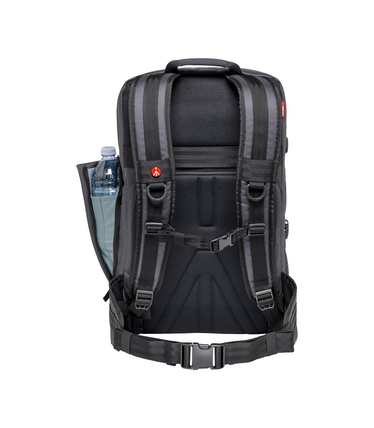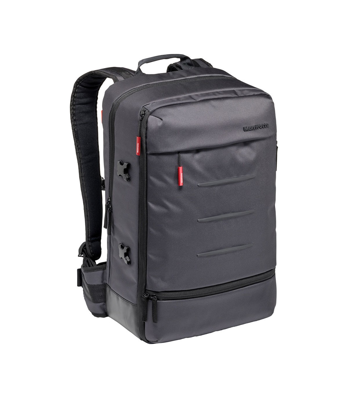 کوله پشتی مانفروتو Manhattan Mover-50 یک راه حل عالی برای حمل و نقل یا نگهداری از تجهیزات عکاسی است. این کوله پشتی با دسترسی آسان از بالا و پشت، به پدهای جداکننده قابل تنظیمی مجهز شده تا به راحتی یک دوربین بدون آیینه با لنز متصل 70-200mm f/1.8، 4 لنز اضافه، فلاش و تجهیزات جانبی را در خود جای دهد. فضای مخصوص لپتاپ به پدهای ضربه گیر مجهز شده و برای لپتاپ تا سایز 15.6 اینچ مناسب است. یک جیب برای حمل آیپد پرو 9.7 اینچ نیز در این کیف تعبیه شده است. جیب های کناری نیز برای حمل بطری آب یا لوازم شخصی مناسب هستند.