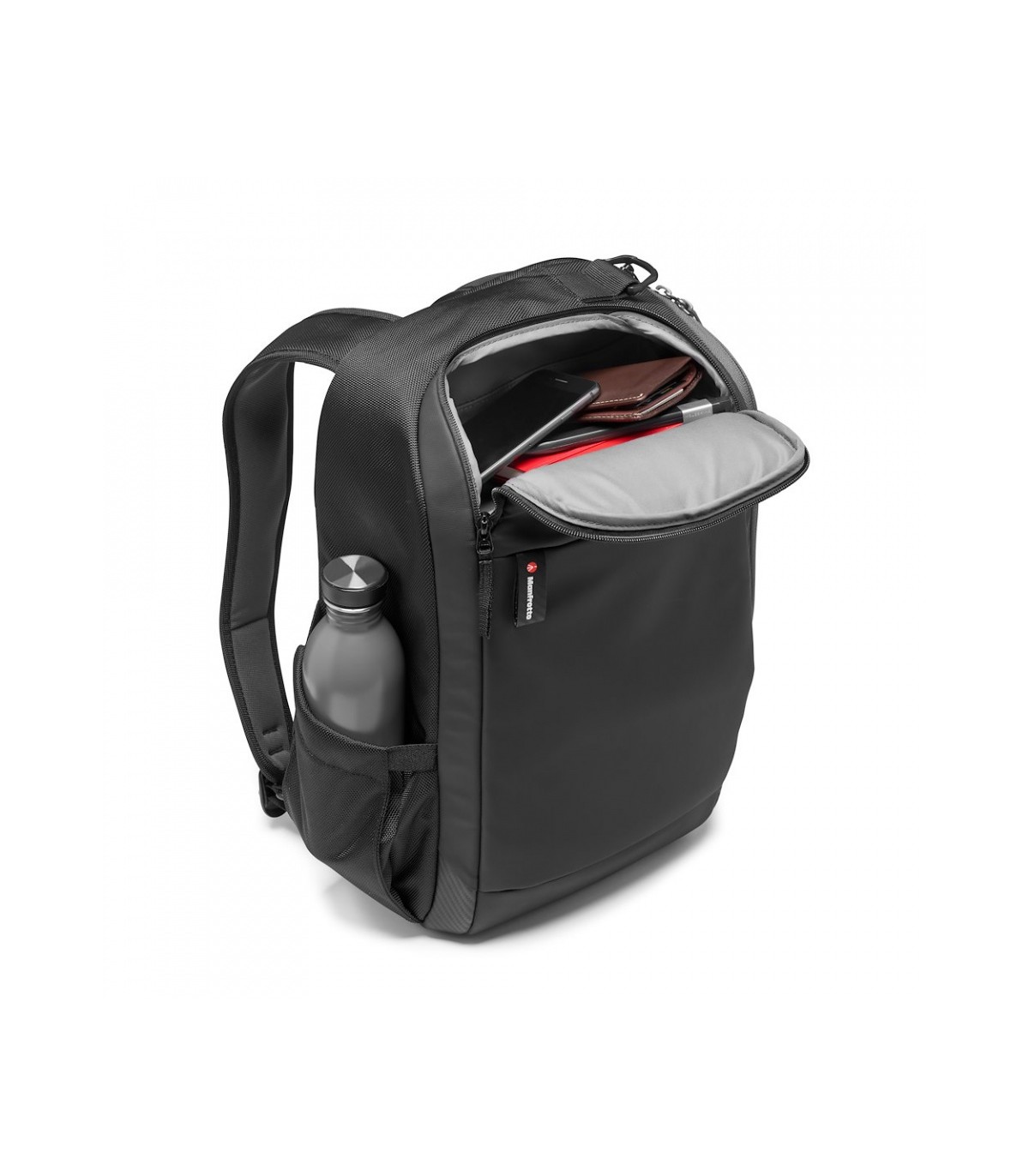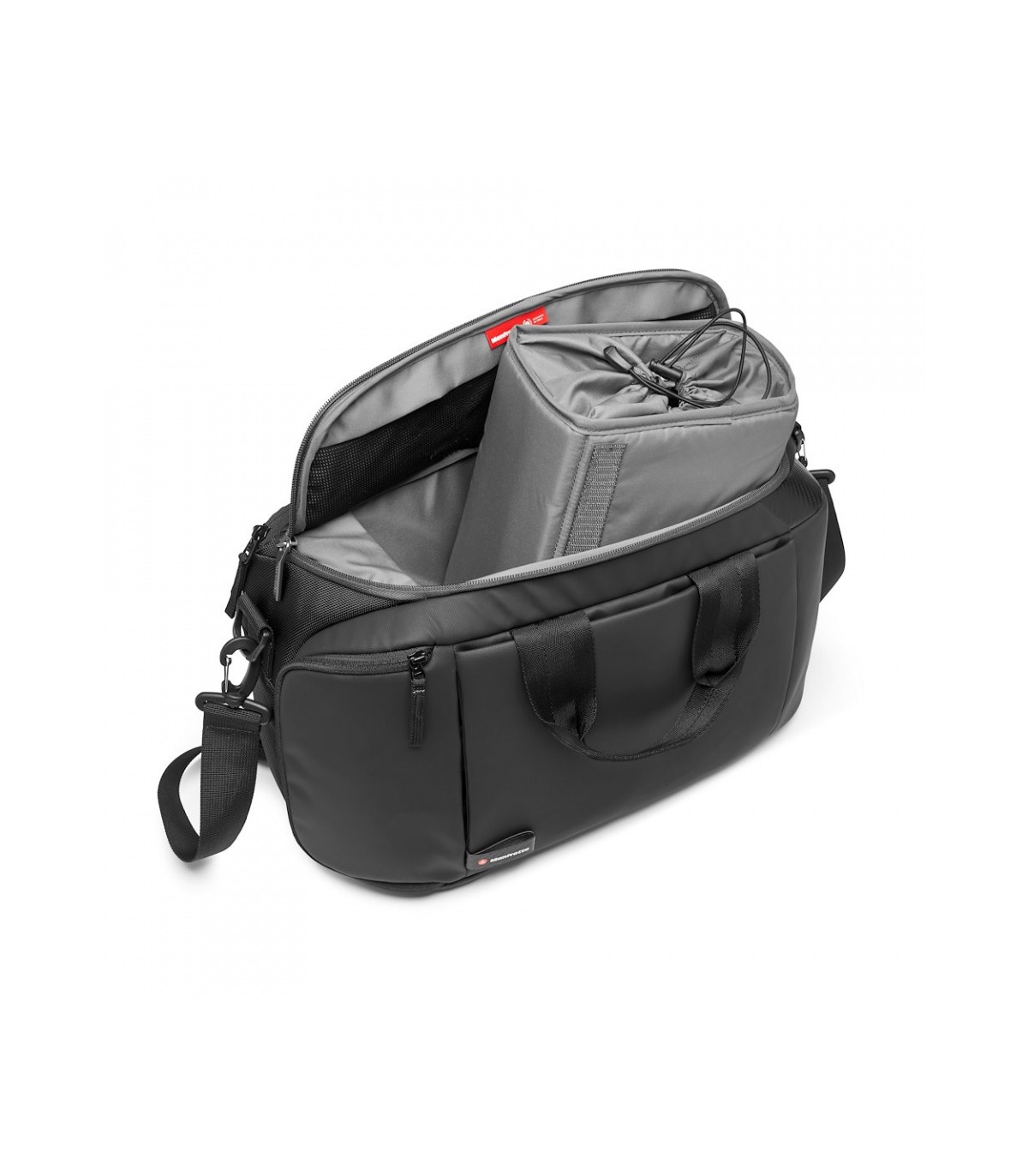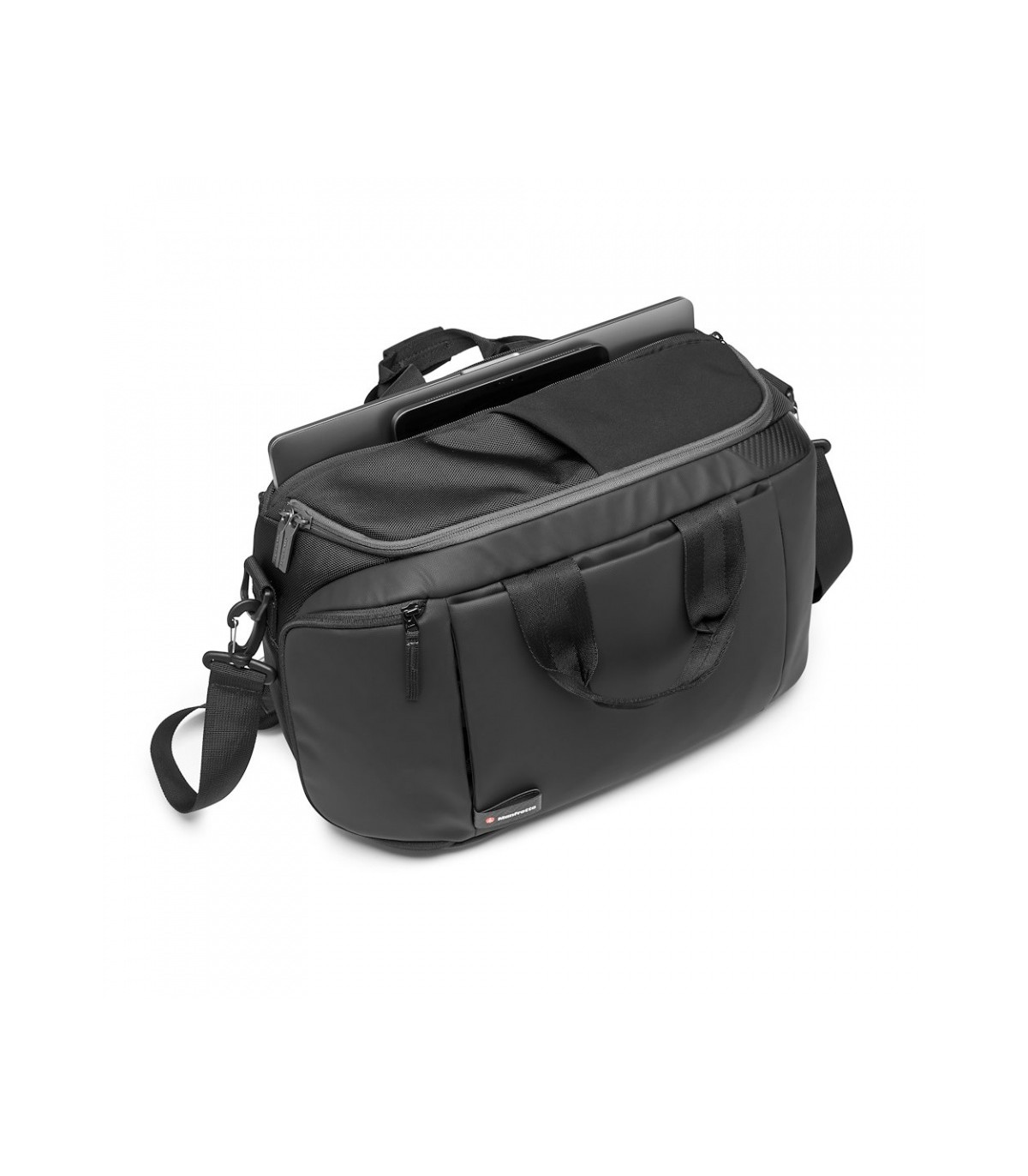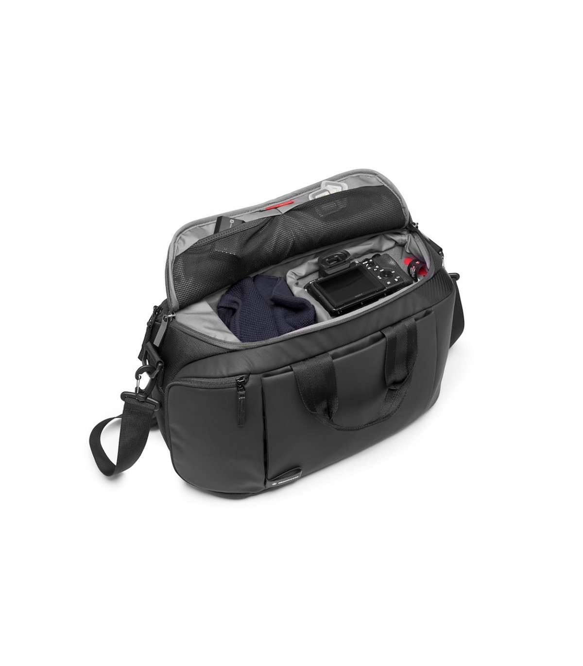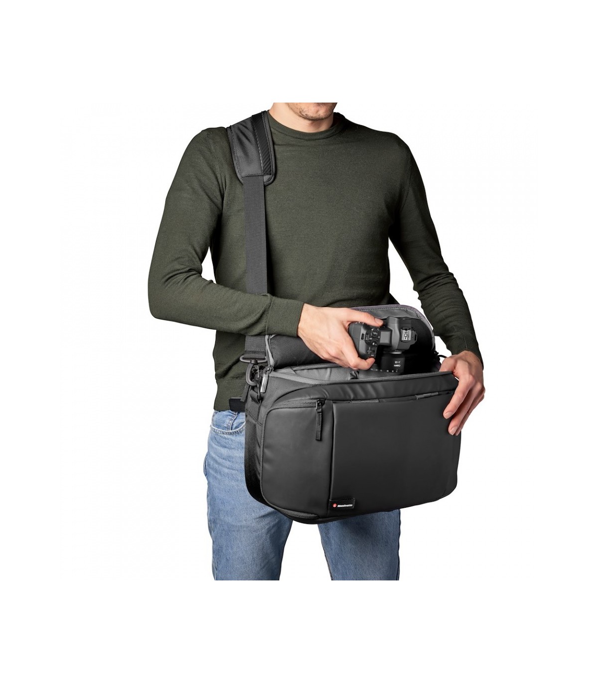 کوله پشتی چندکاره مانفروتو Advanced2 Hybrid Backpack M یک کیف همه فن حریف برای عکاسی خیابانی یا حتی مسافرت است. از این کیف می توان به عنوان کوله پشتی، کیف دوشی یا کیف دستی استفاده کرد. بند شانه ای قابل جدا شدن است و بندهای کوله نیز با زیپ به کیف بسته می شود. فضای داخلی این کیف برای حمل یک دوربین DSLR یا بدون آیینه به همراه دو عدد لنز متوسط کافی است. البته فضای زیادی برای وسایل شخصی نیز در نظر گرفته شده است. برای حمل لپتاپ نیز یک محفظه پد دار تعبیه شده که برای دستگاه هایی تا سایز 14 اینچ مناسب است. تمام رویه این کوله پشتی از الیاف مقاوم در برابر آب تشکیل شده است؛ اگرچه یک کاور باران نیز به همراه این محصول ارائه شده است.