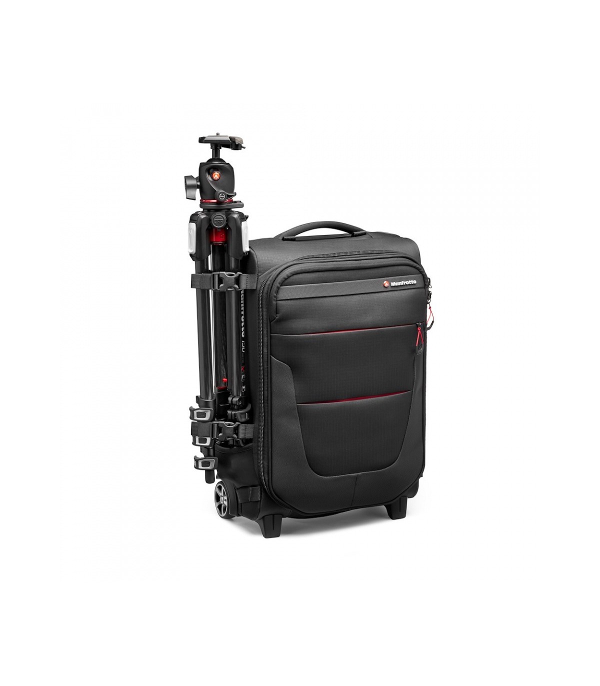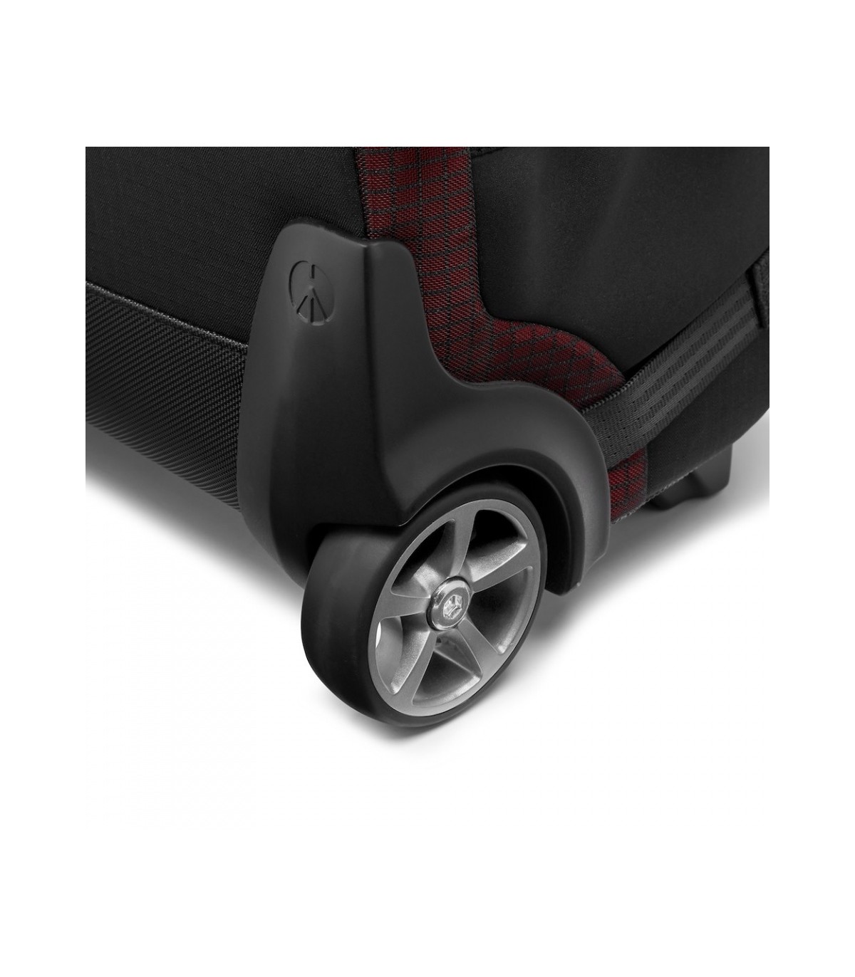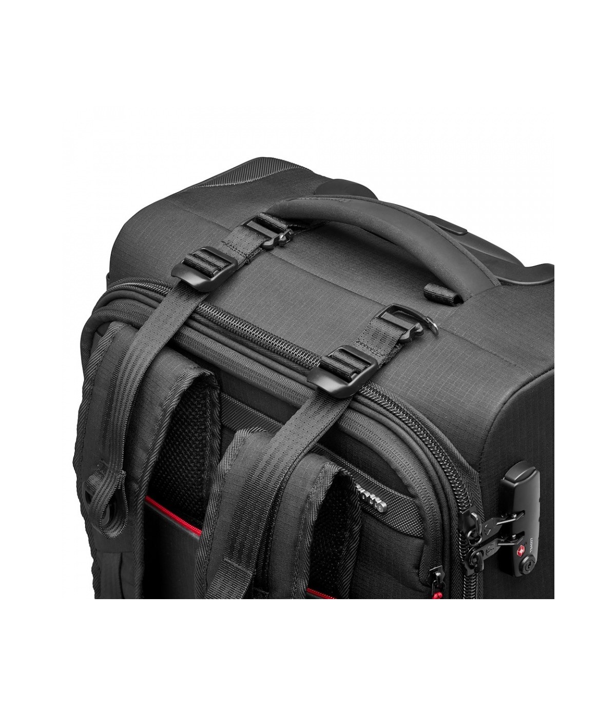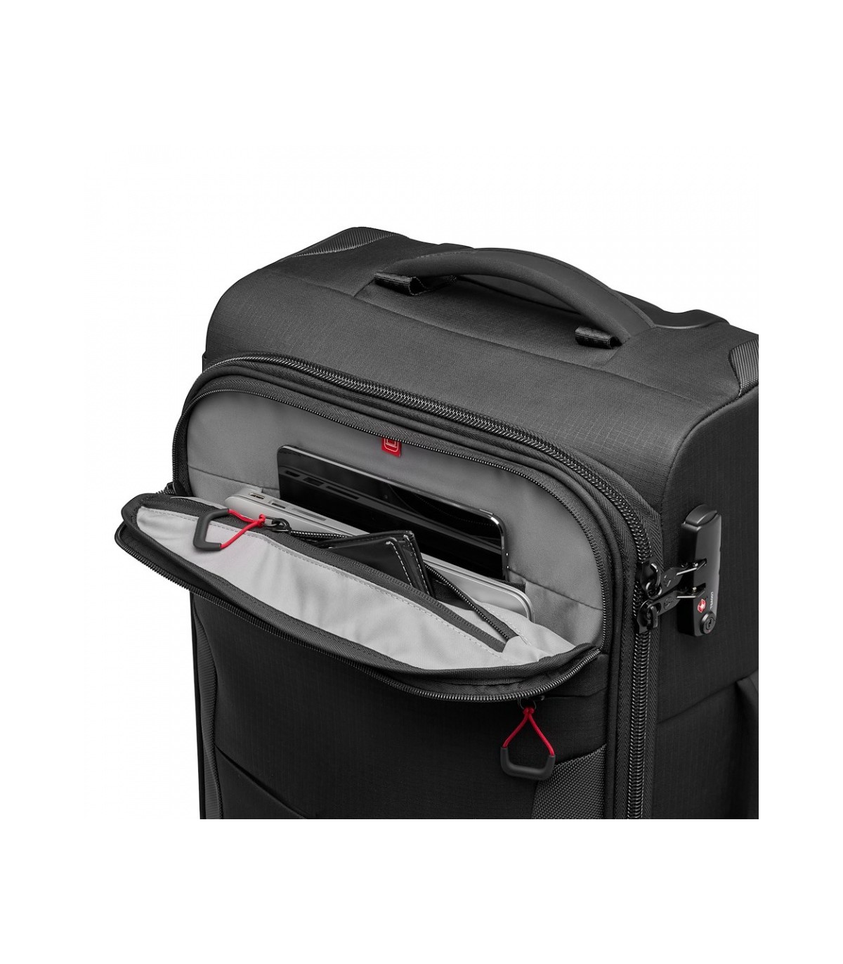 کوله پشتی چرخدار مانفروتو Pro Light Reloader Switch 55 carry-on با توجه به نیازهای عکاسان و فیلمبردارانی که همواره در سفر هستند طراحی شده تا نیاز آن ها برای حمل دوربین های DSLR یا فیلبرداری را به خوبی برآورده کند. در قسمت بیرونی این کوله پشتی از الیاف Rip-Stop استفاده تا در برابر پارگی مقاوم باشد. گوشه های این کوله پشتی تقویت شده و لایه داخلی از جنس فوم EVA است تا همزمان بتوان به عنوان یک چمدان نیز روی آن حساب کرد. بندهای کوله پشتی در جیب مخصوصی قرار گرفته اند تا تنها در مواقع نیاز آن ها را خارج کرد. این کوله پشتی به 14 جدا کننده محافظتی و 2 جداکننده مخصوص مجهز شده که همگی قابل تنظیم هستند. دو جیب شفاف نیز برای قرار دادن کابل و لوازم جانبی در قسمت داخلی آن تعبیه شده است. به طور کلی می توان از این چمدان برای حمل موارد زیر استفاده کرد: