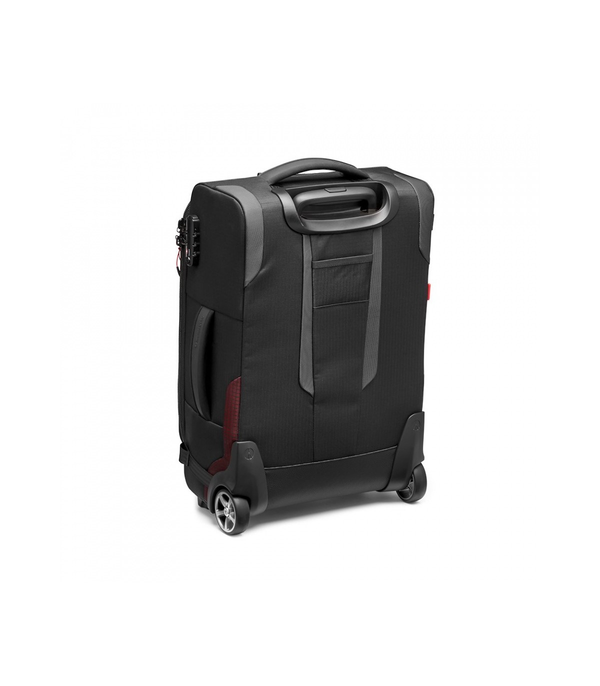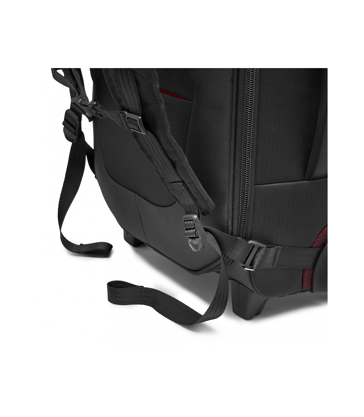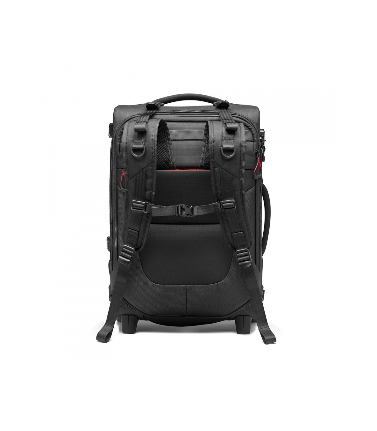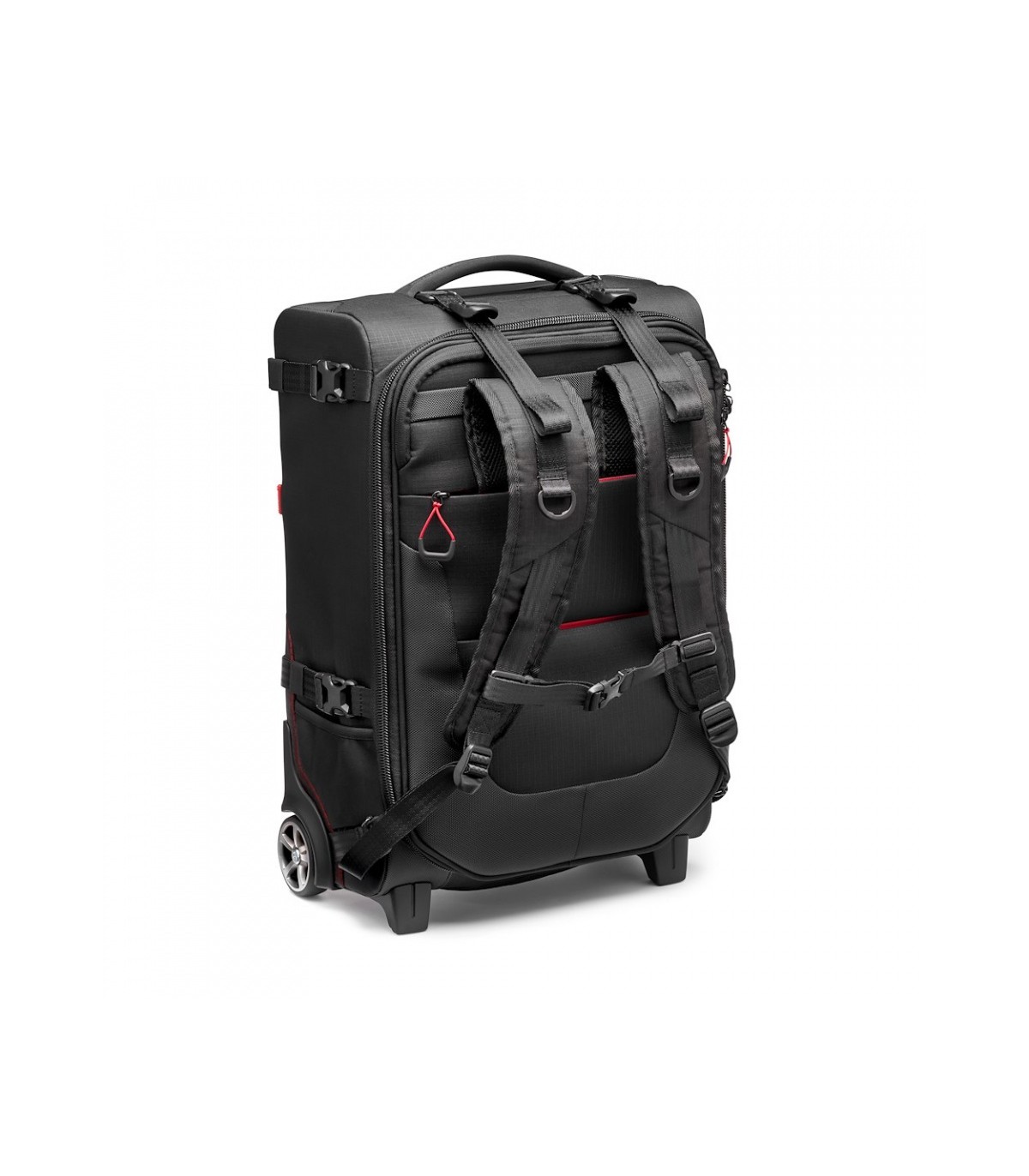 کوله پشتی چرخدار مانفروتو Pro Light Reloader Switch 55 carry-on با توجه به نیازهای عکاسان و فیلمبردارانی که همواره در سفر هستند طراحی شده تا نیاز آن ها برای حمل دوربین های DSLR یا فیلبرداری را به خوبی برآورده کند. در قسمت بیرونی این کوله پشتی از الیاف Rip-Stop استفاده تا در برابر پارگی مقاوم باشد. گوشه های این کوله پشتی تقویت شده و لایه داخلی از جنس فوم EVA است تا همزمان بتوان به عنوان یک چمدان نیز روی آن حساب کرد. بندهای کوله پشتی در جیب مخصوصی قرار گرفته اند تا تنها در مواقع نیاز آن ها را خارج کرد. این کوله پشتی به 14 جدا کننده محافظتی و 2 جداکننده مخصوص مجهز شده که همگی قابل تنظیم هستند. دو جیب شفاف نیز برای قرار دادن کابل و لوازم جانبی در قسمت داخلی آن تعبیه شده است. به طور کلی می توان از این چمدان برای حمل موارد زیر استفاده کرد: