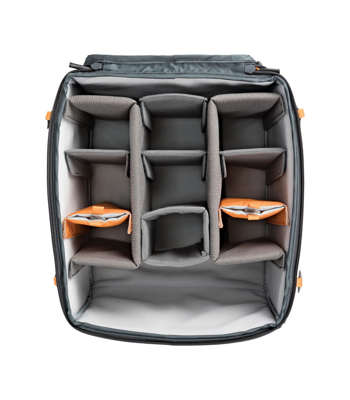 بخش نگهداری دوربین دسترسی جداگانه‌ای دارد که فضای کافی برای حمل دو بدنه DSLR به همراه ۳ عدد لنز یا یک بدنه بدون آینه با ۴ تا ۵ لنز را فراهم کرده است. محفظه مخصوص نگهداری از لپتاپ نیز برای حمل تبلت و لپتاپ تا سایز ۱۵ اینچ مناسب است.
