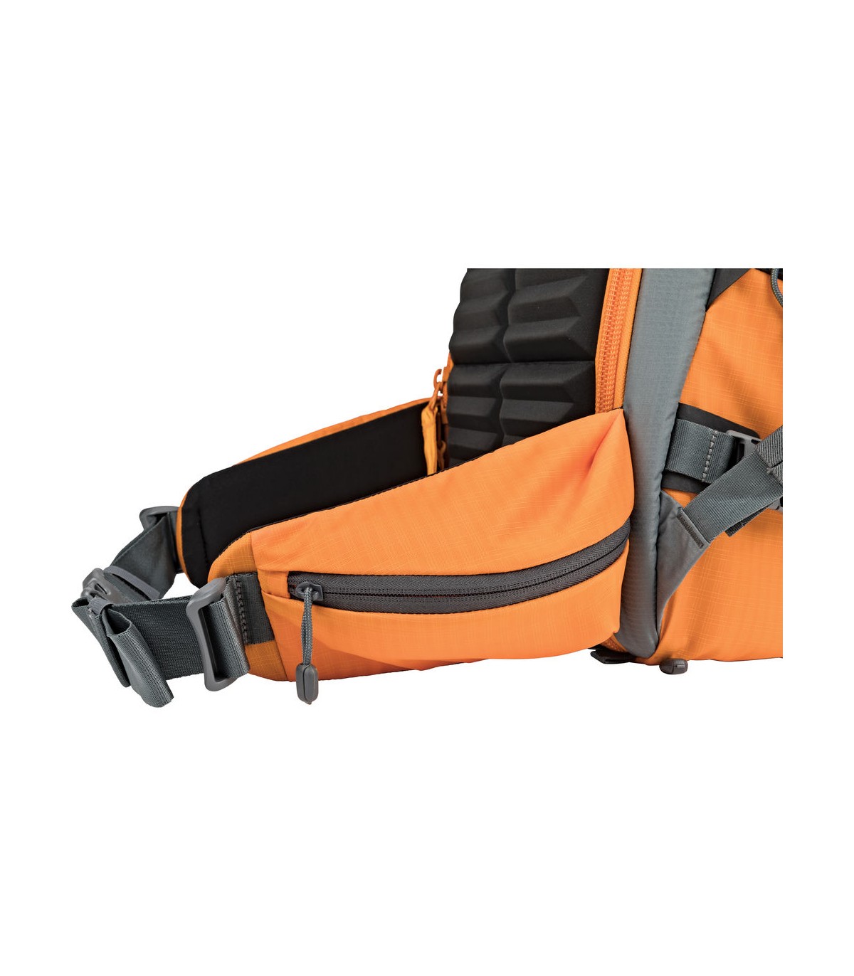 بخش پشتی و بندهای شانهای کوله پشتی Lowepro مدل Powder BackPack 500 AW دارای پدهای نرم و برای کاهش فشار وارده بر کمر است. این محصول از نایلون ضدآب ساخته شده و هیچ درزی برای ورود آب ندارد. با این حال، یک کاور باران نیز برای جلوگیری از خیس شدن کیف به همراه آن عرضه شده است.