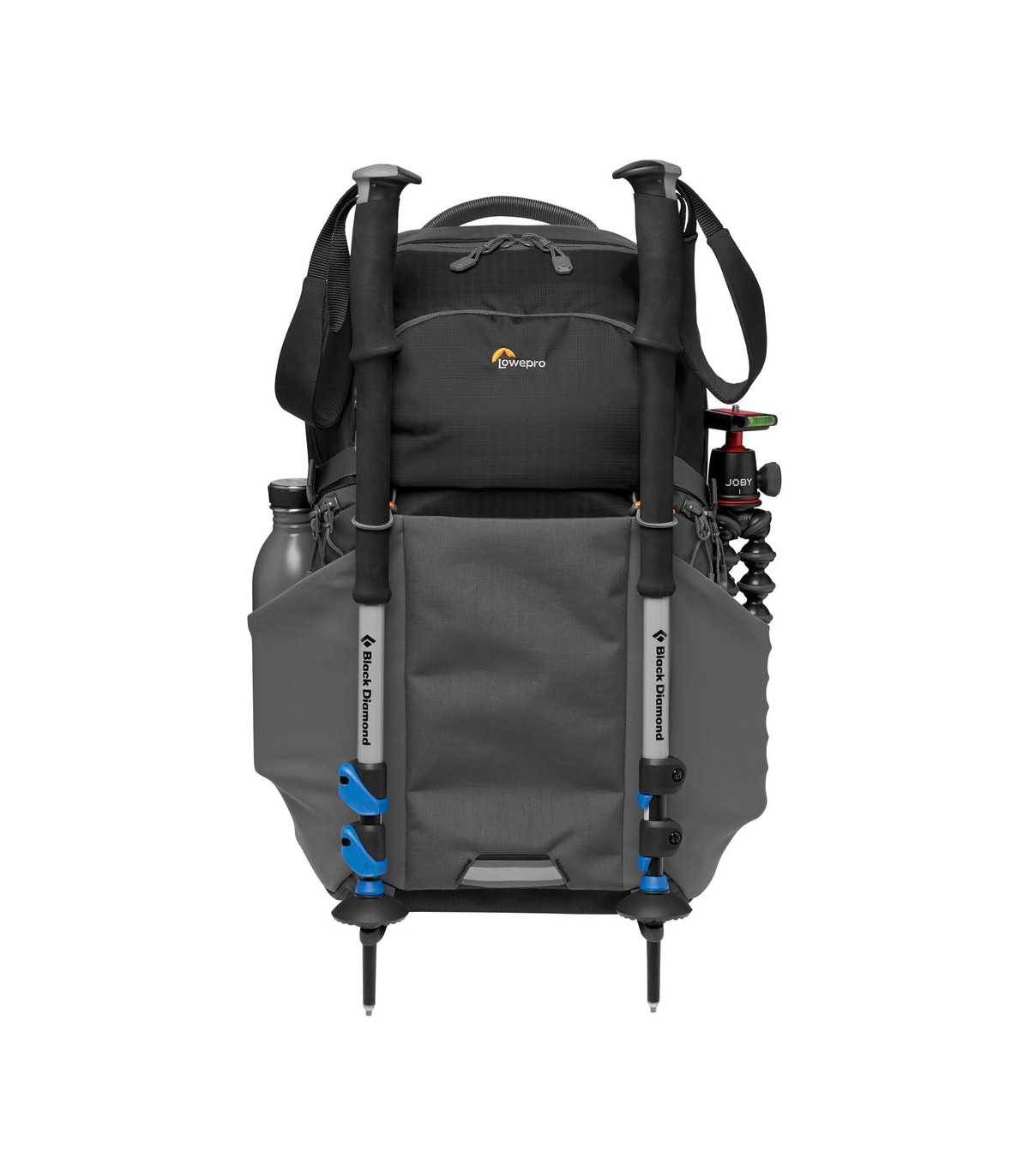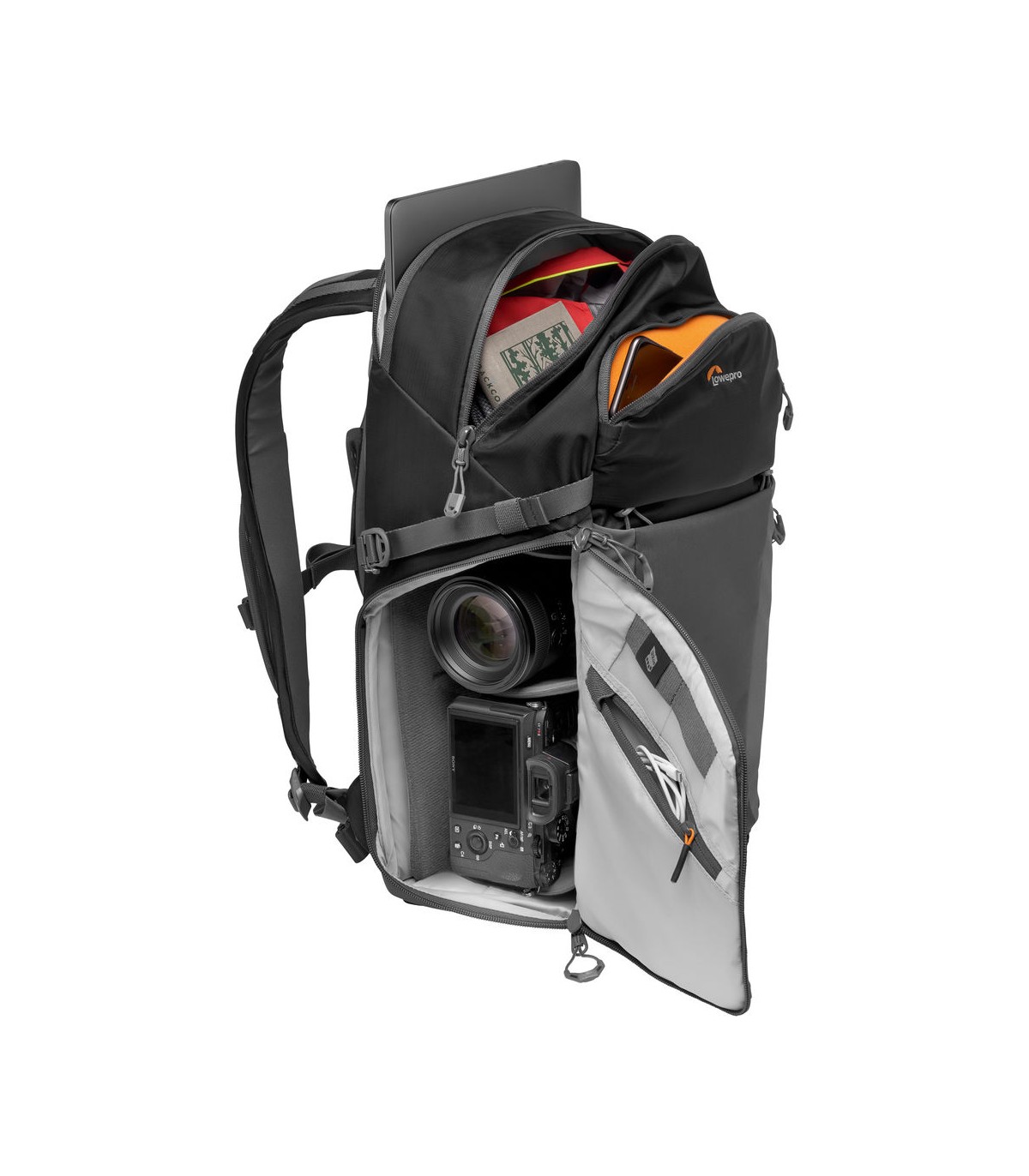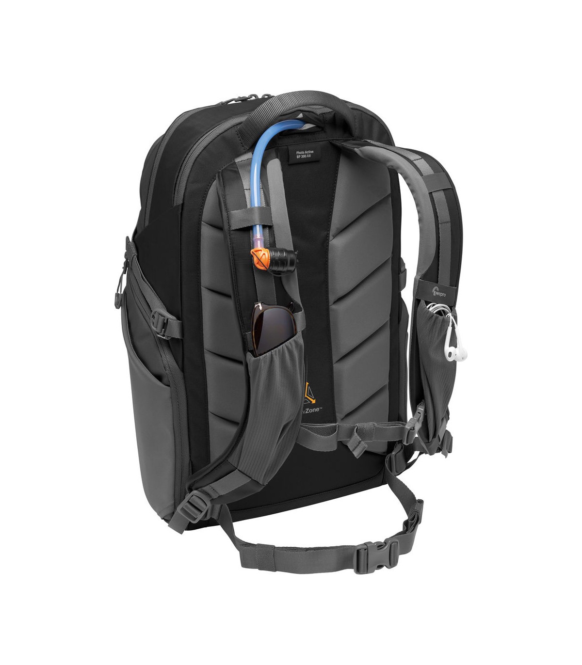 کوله پشتی Lowepro مدل Photo Active BP 300 AW یک محصول کارامد برای علاقمندان به گردش در طبیعت است که به لطف استفاده از الیاف ضدپارگی، مقاوم در برابر سایش و ضدآب، محافظت قابل اطمینانی از تجهیزات داخل کولهپشتی را ایجاد میکند. داخل این کیف از جداکنندههای مخصوصی استفاده شده که قابل شخصیسازی هستند؛ به طوریکه میتوان یک بدنه دوربین DSLR را به همراه یک لنز ۲۰۰-۷۰ میلیمتر و یک لنز فیکس ۳۰۰ میلیمتری را در آن قرار داد. دسترسی به محتویات کیف بسیار آسان و سریع است. جیبهای کناری نیز برای حمل سهپایه یا بطری آب مناسب هستند. محفظه حمل لپتاپ، برای دستگاههایی تا سایز ۱۵ اینچ مناسب است. البته در این محفظه میتوان یک کیسه آب ۳ لیتری نیز قرار داد. قابلیت اتصال تکپایه یا عصای کوهنوردی نیز به این محصول وجود دارد. در قسمت پنل پشتی نیز از سیستم ActivZone برای گردش هوا در ناحیه کمر استفاده شده تا در روزهای گرم تابستانی، کمر فرد حمل کننده خشک باقی بماند.
