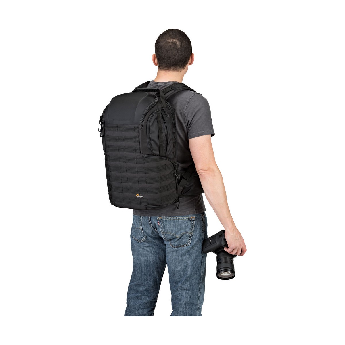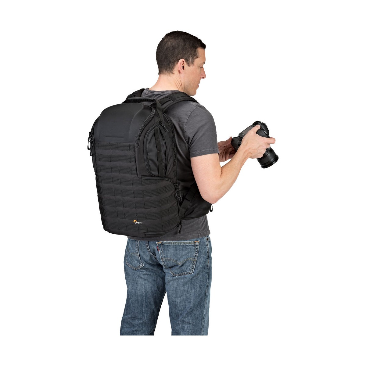 کولهپشتی دوربین و لپتاپ لوپرو مدل ProTactic 450 AQ II امکان حمل یک و حتی دو دوربین DSLR حرفهای که به یکی از آنها یک لنز ۲۰۰-۷۰ میلیمتری f/2.8 متصل است را فراهم کرده است. نسل دوم کوله ProTactic 450 AQ II نسب به نسل قبل، هم کارایی بیشتری دارد و هم محافظت بیشتری در مقابل تجهیزات عکاسی شما به عمل میآورد. این کیف همچنین قابلیت حمل ۸ لنز اضافی و یا فلاش، سهپایه و یک لپتاپ ۱۵ اینچی را در اختیار کاربران گذاشته است. کاربران در استفاده از این کوله پشتی از دو سمت کناری، بالا و پایین کوله امکان دسترسی به تجهیزات داخل کیف را دارند که همین موضوع باعث آن شده است که بتوان به سرعت به دوربین و یا سایر وسایل دسترسی پیدا کرد. لازم به ذکر است که میتوان اندازه جداکنندههای داخل کیف را به آسانی تغییر داد و با توجه به وسایل شخصی سازی کرد.