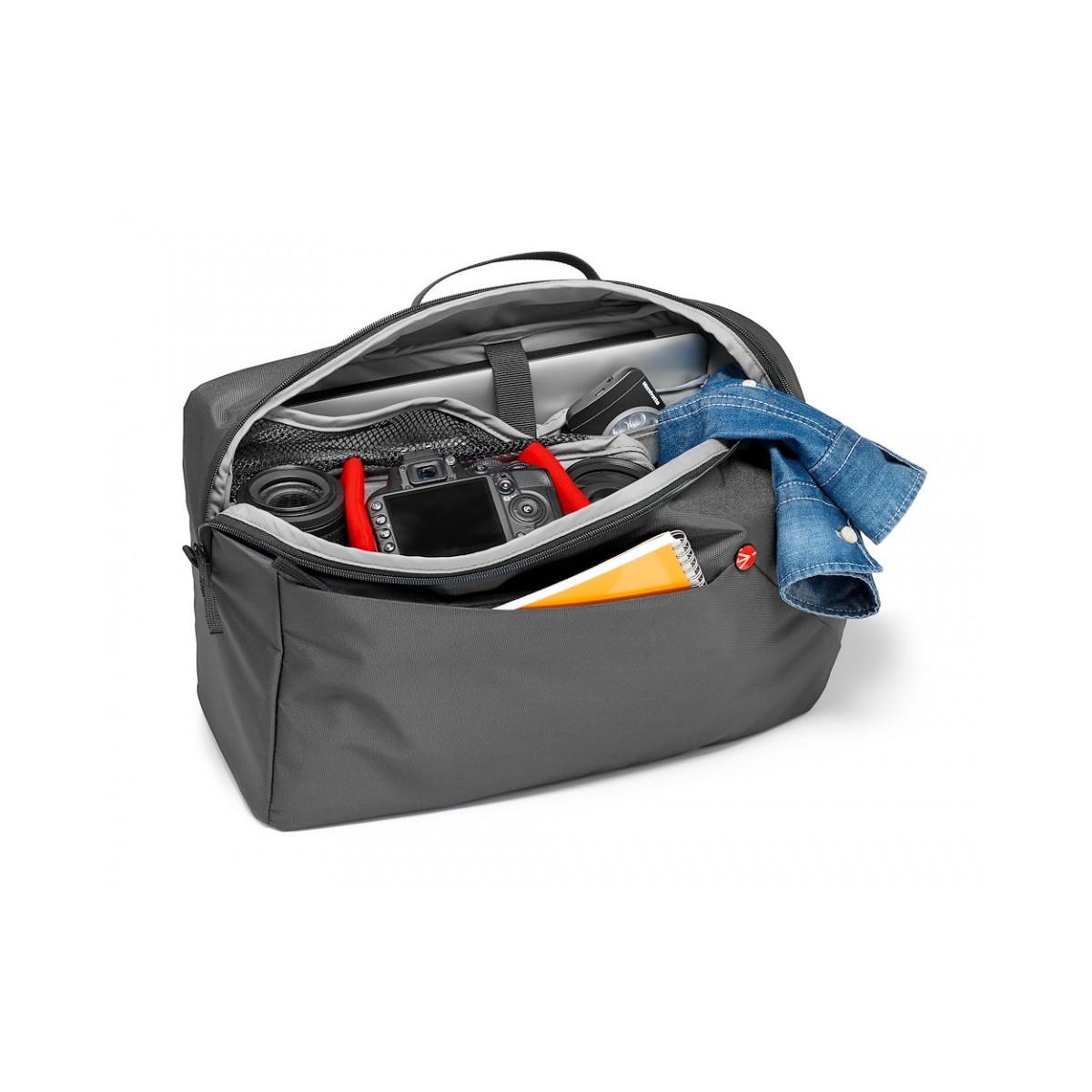 کولهپشتی تکبند عکاسی NX ساخته شده توسط مانفروتو یک کیف عالی برای حمل دوربین و تجهیزات عکاسی و همچنین استفاده روزمره است. این اسلینگ بگ دارای قسمت پددار با قابلیت محافظت بالا است و همچنین محفظه ۱۳ اینچی برای قرار دادن لپتاپ است. قسمت پددار قرارگیری تجهیزات به سیستم انحصاری شرکت مانفروتو مجهز شده است که موجب محافظت کامل از ابزار ارزشمند کاربران شده است. در این قسمت میتوان یک دوربین DSLR مانند نیکون D5500 و یا کانن 750d به همراه یک لنز متصل و دو لنز اضافی را قرار داد. این کوله همچنین دارای جیبها و جداکنندههای متعدد برای قرار دادن لوازم جانبی و لوازم شخصی مانند کیف پول، کلید و لوازمتحریر است.
