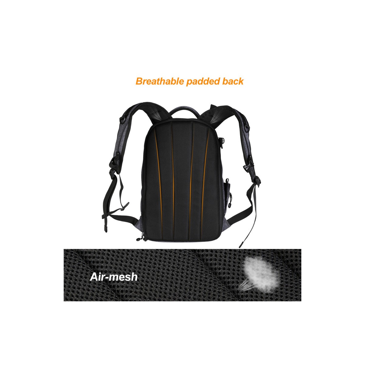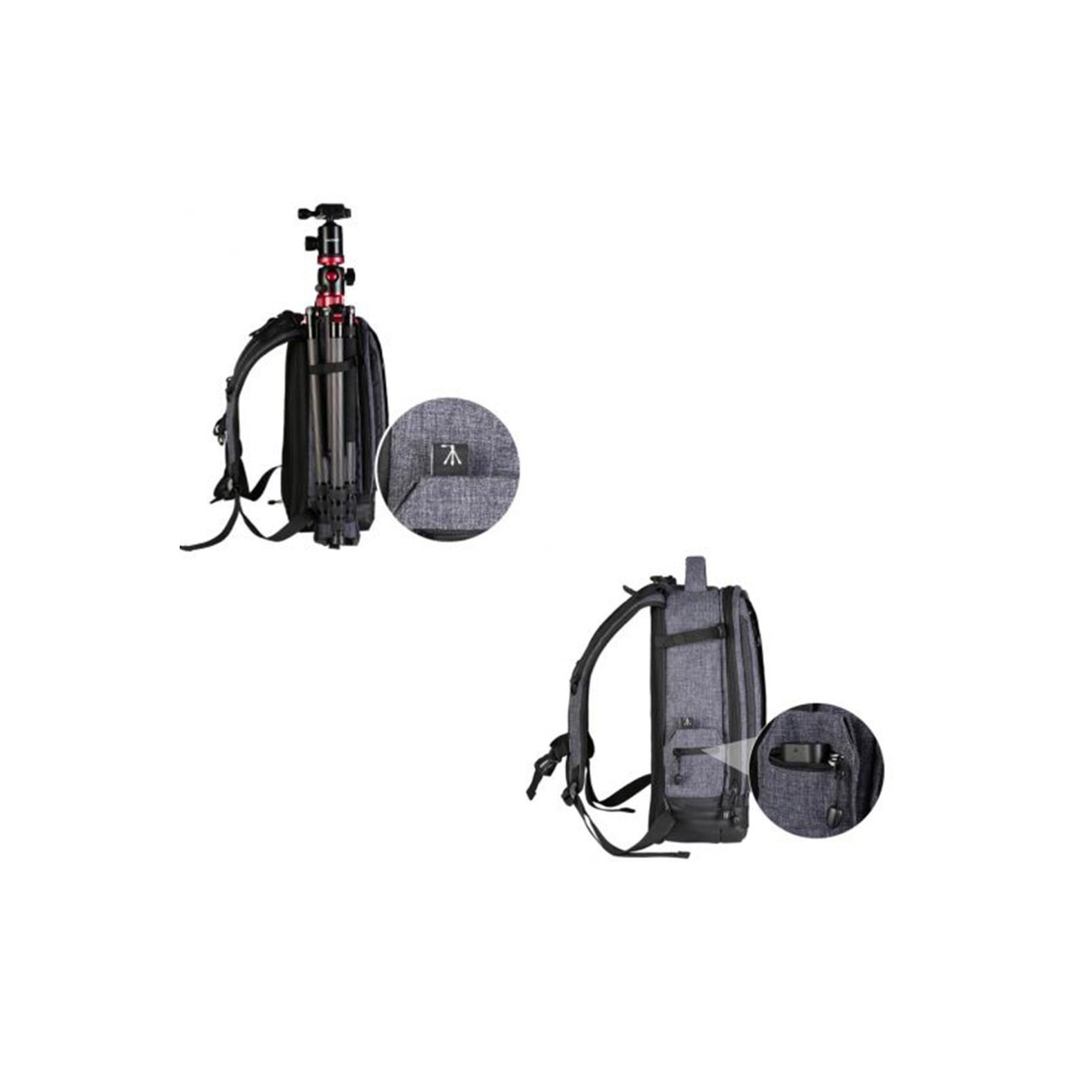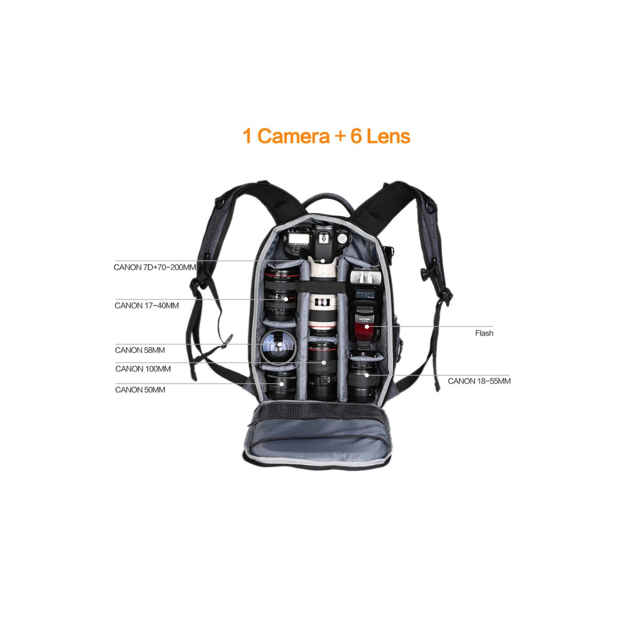 • فضای کافی برای حمل یک دوربین به همراه لنز ۲۰۰-۷۰ میلی‌متری متصل، ۶ لنز اضافی و فلاش