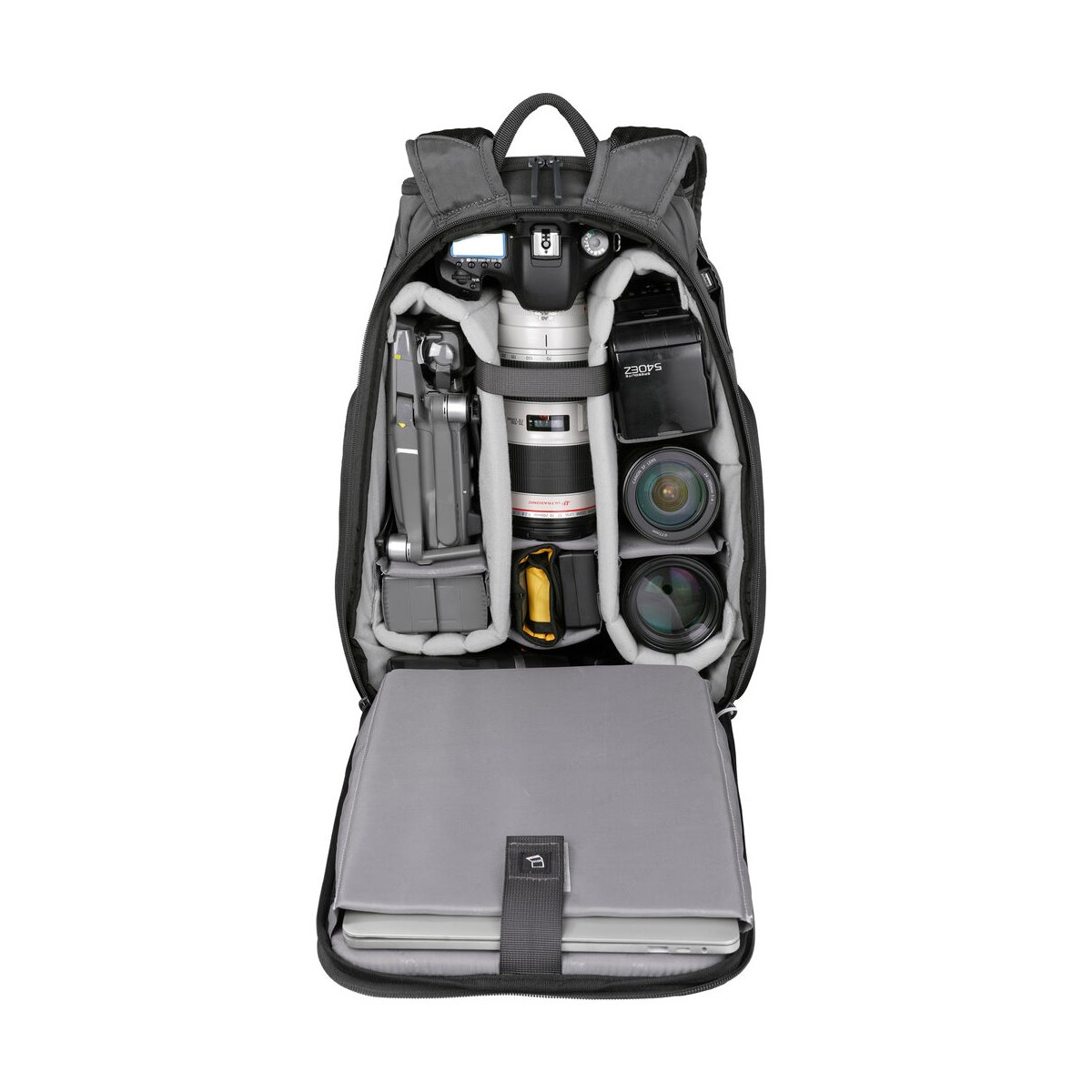 • فضای کافی برای حمل یک دوربین DSLR حرفه‌ای، ۸ لنز و لوازم جانبی