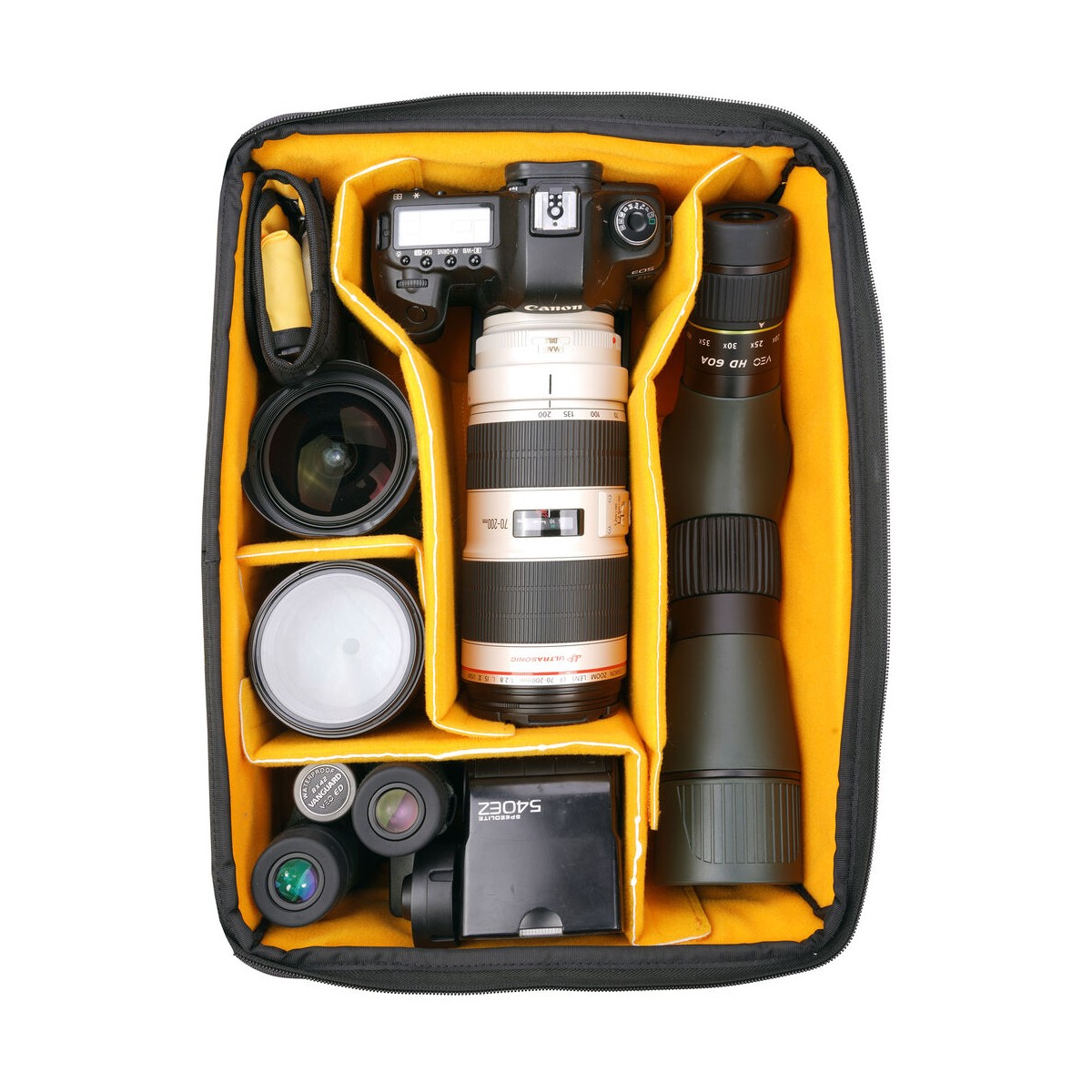 کولهپشتی VEO Active 53 یک کولهپشتی عکاسی مقاوم برای رویارویی با شرایط سخت است. این کولهپشتی در قسمت بالایی خود دارای یک محفظه با قابلیت افزایش حجم و جیبهایی نیز با این قابلیت بر روی بند کمری و بندهای شانه کولهپشتی است. جداکنندههای داخلی این کیف را میتوان از کوله جدا کرد تا بتوان از آن بهعنوان یک کولهپشتی روزمره استفاده کرد. کوله Active 53 دارای بندهایی برای اتصال تجهیزات به قسمت بیرونی کیف است. قسمت داخلی این کیف دارای فضای کافی برای قرارگیری دو دوربین بدون آینه یا DSLR، شش لنز یا یک پهپاد کوچک همراه با لوازم جانبی است. همچنین این کوله فضای اضافی برای قرار دادن یک فلاش، یک سهپایه، گوشی هوشمند، یک تبلت، یک لپتاپ، یک بطری آب و سایر لوازم جانبی را در اختیار کاربر میگذارد. بر روی این کیف یک سوکت USB وجود دارد که میتوان از آن برای اتصال گوشی به پاور بانک استفاده کرد.