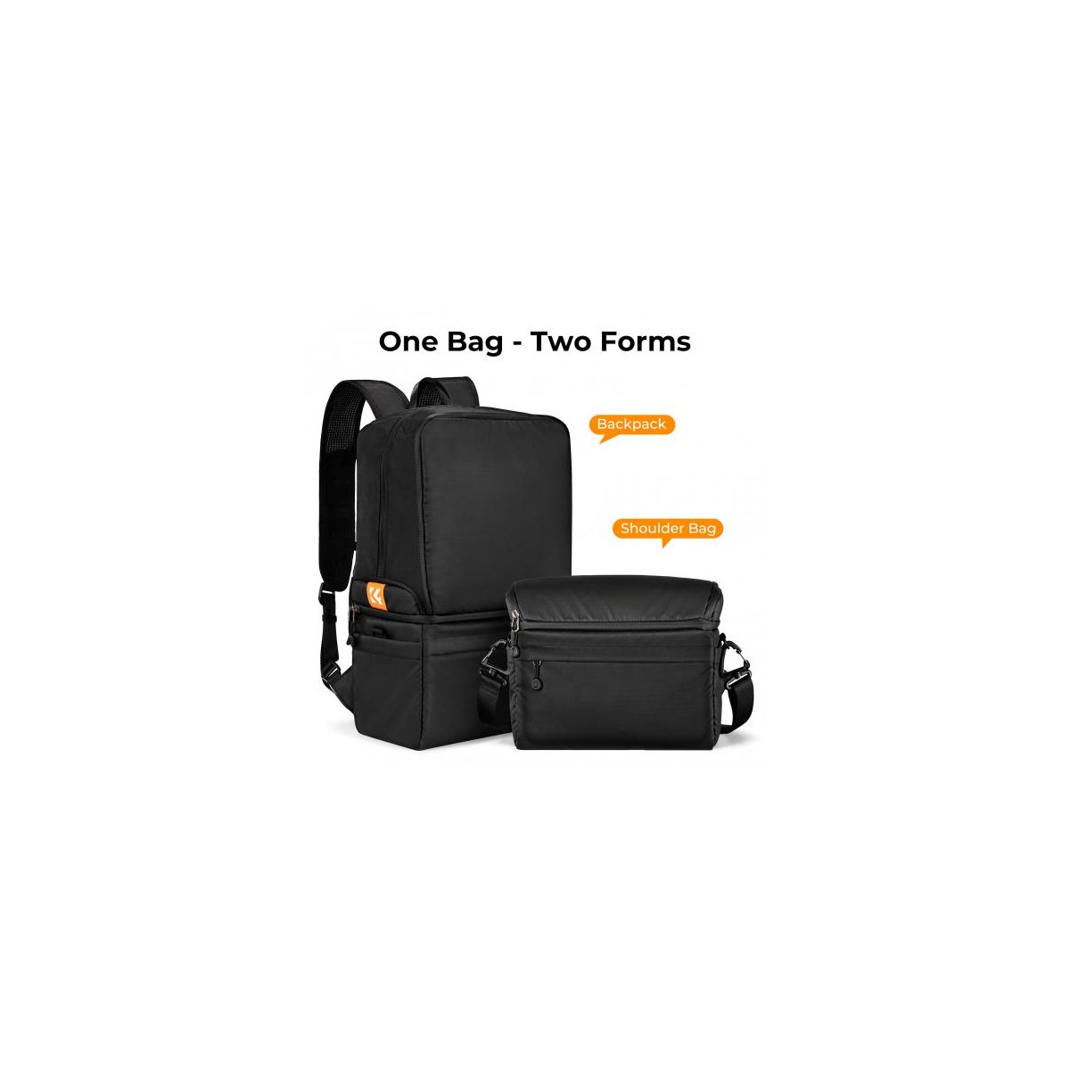 امکان استفاده از کیف در حالت باز به عنوان کوله پشتی مسافرتی، یا در حالت بسته به دلیل طراحی جمعوجور به عنوان کیف دوربین که داخل کیف مسافرتی شما جای میگیرد.