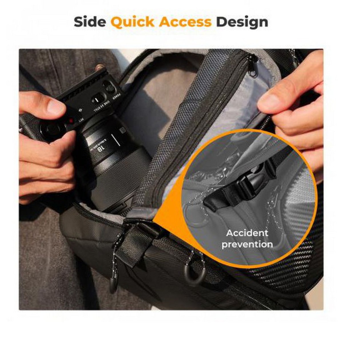 در طراحی این کولهپشتی، امکان دسترسی سریع به دوربین در نظر گرفته شده است. در سمت کناری بدنه، یک زیپ مخصوص قرار دارد که به کاربر این امکان را میدهد بدون نیاز به باز کردن کامل کوله، به دوربین دسترسی پیدا کند. این ویژگی برای موقعیتهایی که باید لحظهای خاص را شکار کنید یا سریع عکس بگیرید، فوقالعاده کاربردی است.