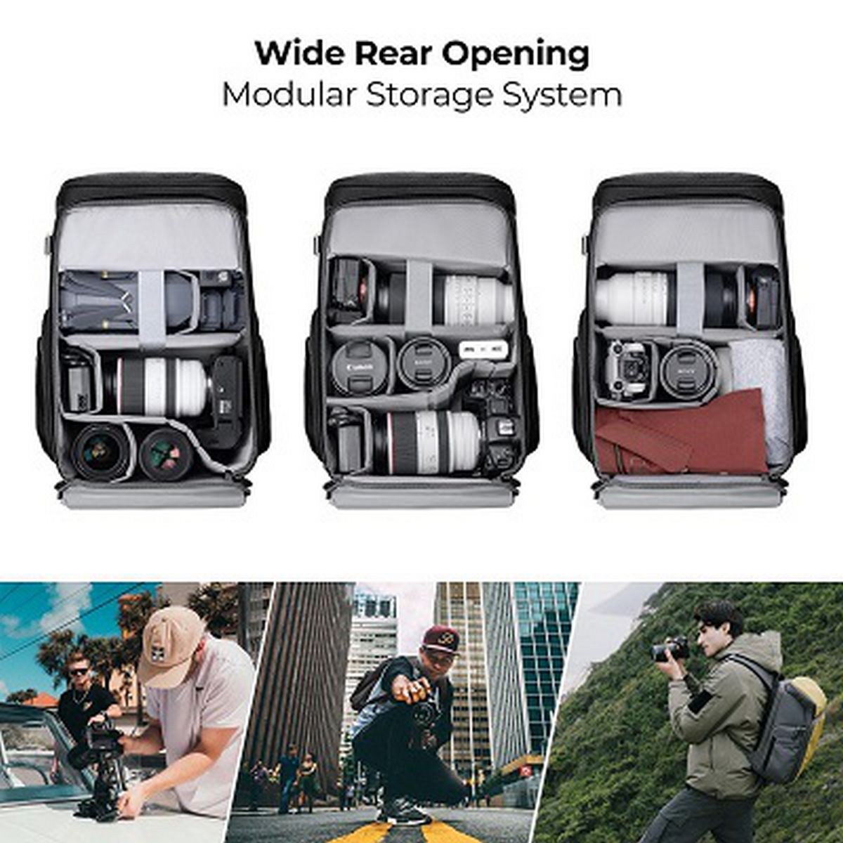 بدنهی این کولهپشتی از مواد مقاوم در برابر آب، خطوخش و ضربه ساخته شده است و در برابر شرایط نامساعد محیطی از تجهیزات حساس دوربین محافظت میکند. پارچهی بیرونی ضدآب، زیپهای مقاوم و ساختار داخلی، این محصول را برای استفاده در فضای باز، مناطق مرطوب و محیطهای پرچالش بسیار مناسب میسازند.