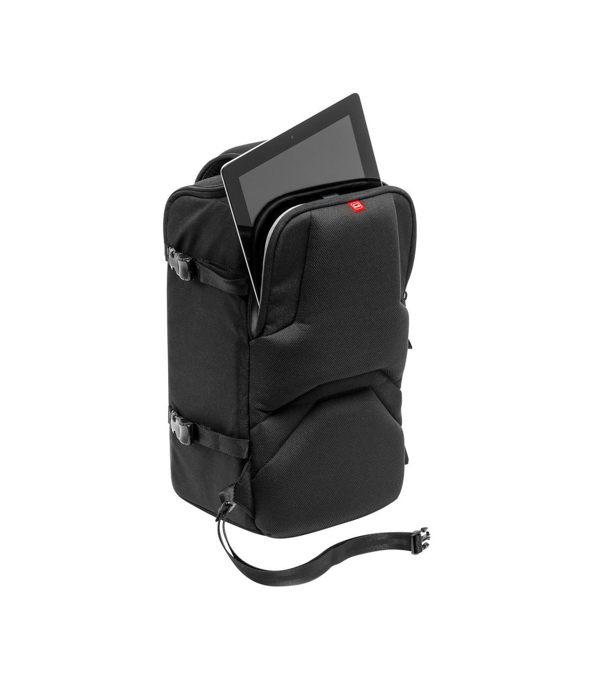 علاوه بر امکان قرار دادن لوازم عکاسی در این کیف، یک بخش مجزا در قسمت جلویی کیف تعبیه شده که میتوان تبلتهایی با ابعاد متفاوت را در آن قرار داد.