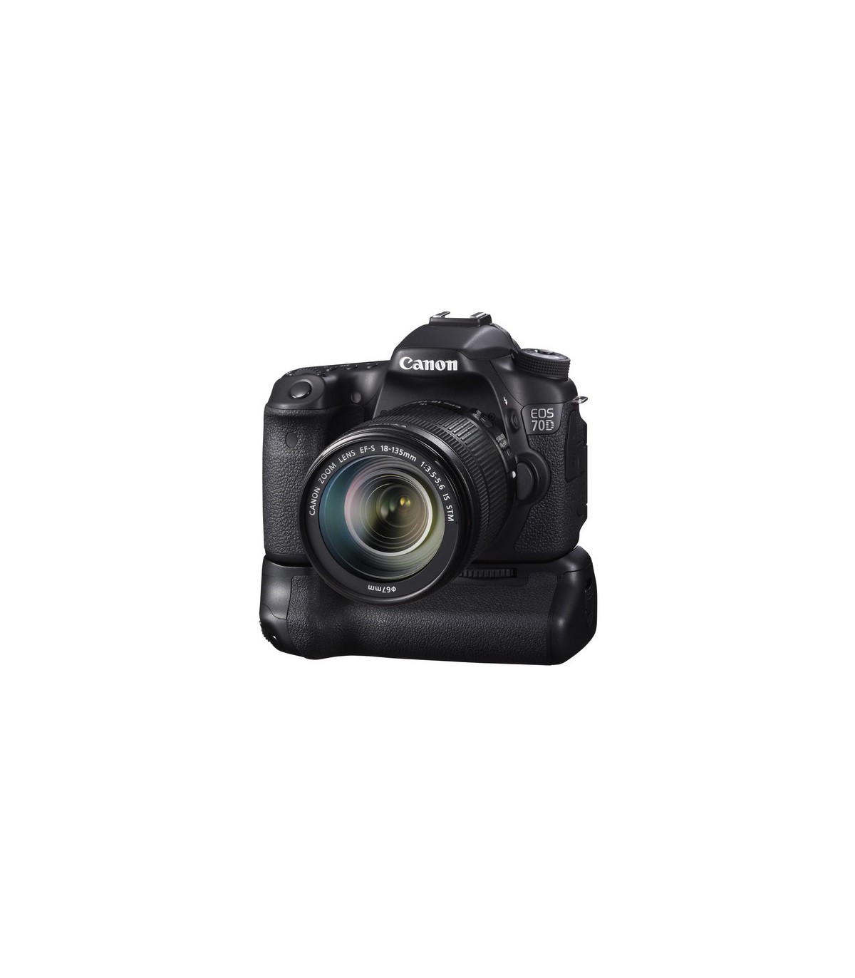 باتری گریپها میتوانند برای استفادهی آسانتر دوربین در حالت عمودی (پرتره) یا افزایش مدت عکاسی و فیلمبرداری (با استفاده از یک باتری اضافه) استفاده شوند. این باتری گریپ مخصوص دوربین کانن EOS 70D است. دو خشاب مختلف به همراه این محصول ارائه میشود که در یکی از آنها میتوان دو باتری LP-E6 و در دیگری میتوان شش باتری قلمی سایز AA قرار داد. هرکدام از این خشابها را میتوان داخل باتری گریپ قرار داد. روی این باتری گریپ بسیاری از دکمههای کاربردی دوربین قرار گرفتهاند تا کاربر بتواند در حالت عمودی نیز از آنها بهراحتی استفاده نماید.