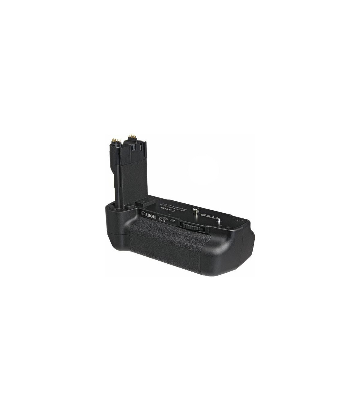 باتری گریپها میتوانند برای استفادهی آسانتر دوربین در حالت عمودی (پرتره) یا افزایش مدت عکاسی و فیلمبرداری (با استفاده از یک باتری اضافه) استفاده شوند. این باتری گریپ مخصوص دوربین EOS 5D Mark II است. دو خشاب مختلف به همراه این محصول ارائه میشود که در یکی از آنها میتوان دو باتری LP-E6 و در دیگری میتوان شش باتری قلمی سایز AA قرار داد. هرکدام از این خشابها را میتوان داخل باتری گریپ قرار داد. روی این باتری گریپ بسیاری از دکمههای کاربردی دوربین قرار گرفتهاند تا کاربر بتواند در حالت عمودی نیز از آنها بهراحتی استفاده نماید.