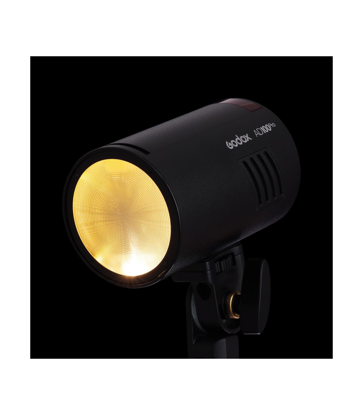 فلاش AD100Pro دارای قابلیتهای ویژهای از جمله توان ۱۰۰ ژولی با امکان تنظیم در نه پله از 1/256 تا تمام توان است. سرعت بازیابی این فلاش نیز از یک صدم ثانیه تا یک و نیم ثانیه بر حسب قدرت استفاده شده، متغیر است. فلاش AD100Pro دارای حالتهای دستی، خودکار و استروبوسکوپیک است. حالت دستی امکاناتی نظیر تنظیم توان خروجی، لامپ مادلینگ و امکانات دیگری را در اختیار کاربر گذاشته است. مولتی مد موجود در این فلاش امکان فعال سازی حالت چشمکزن تا ۹۰ بار در ثانیه را فراهم کرده است. در صورت اختیار نیز میتوان از فرستنده بیسیم استفاده کرد که ۳۲ کانال در ۴ گروه را در اختیار کاربران گذاشته است. آپدیتهای فریمور نیز از سایت گودوکس در دسترس است.