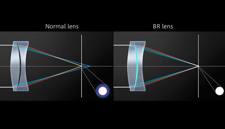 ساختار اپتیک عدسیهای لنزهای BR از مواد ارگانیک خاصی ساخته شده است که توسط خود کانن تولید شده و توسعه یافته است. این لنزها از عدسیهای مقعر و محدبی ساخته شده است که میتواند نورهای مرئی را دقیقه در یک نقطه خاص متمرکز کند. لنزهای دیگر، معمولاً در متمرکز کردن طول موجهای رنگ آبی ضعف دارند و بیشترین شکست نور در این طول موجها اتفاق میافتد.