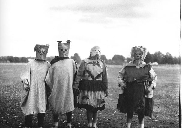 حداقل ۲۶ مورد از پرترهها هنگام هالووین یا زمانی در همان حدود ثبت شدهاند. در بعضی از تصاویر ماسکها تا حد زیادی بخشی از خود فرد به نظر میرسند، احتمالا افراد قبل یا بعد از ۳۱ اکتبر اینها را میپوشیده اند. حتی نیمچه ماسکهایی که چشم ها و بینی را میپوشاند، با صورت زنان در آمیخته شده بود. در بعضی موارد به سختی میتوان گفت کجا ماسک تمام میشود و کجا صورت آغاز میشود. در یک عکس، به سختی میتوان تشخیص داد که این زن ماسک پوشیده یا صورت خودش به این شکل است. زن دیگری ماسکش را برعکس پوشیده و اصلا هم مشخص نیست. کاملا طبیعی به نظر میرسد. یک دلیل میتواند این باشد که پوشیدن ماسک برای این آدمها مهم بوده؛ آدمهایی که به خاطر اختلالات و نقصهایی که دارند از بسیاری از ما متفاوت هستند. آیا ماسک می زنند تا از ما پنهان شوند؟ آیا ماسک میزنند تا وانمود کنند شبیه ما هستند؟ آیا ماسک میزنند تا ما را بترسانند؟ یا فقط به خاطر هالووین ماسک می زنند تا خوش بگذرانند؟ یک تناقض آشکار در ماسکزدن یک فرد دارندهی سندروم داون که با اینکار ویژگیهای صمیمیاش را پنهان می کند، وجود دارد. افراد ماسکپوش در صف به کجا می روند؟ کافه تریا؟ مسیر خارج شهر؟ مراسم رقص؟ تماشای ماه؟ یا ایجاد تصاویر فراموش نشدنی؟
