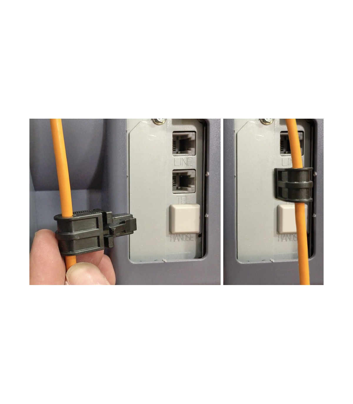 JerkStopper RJ11، یا همان پشتیبان کابل تلفن پشتیبانی ایمن را برای اتصال کابل تلفن به کامپیوتر و لپتاپ را فراهم میآورد.
