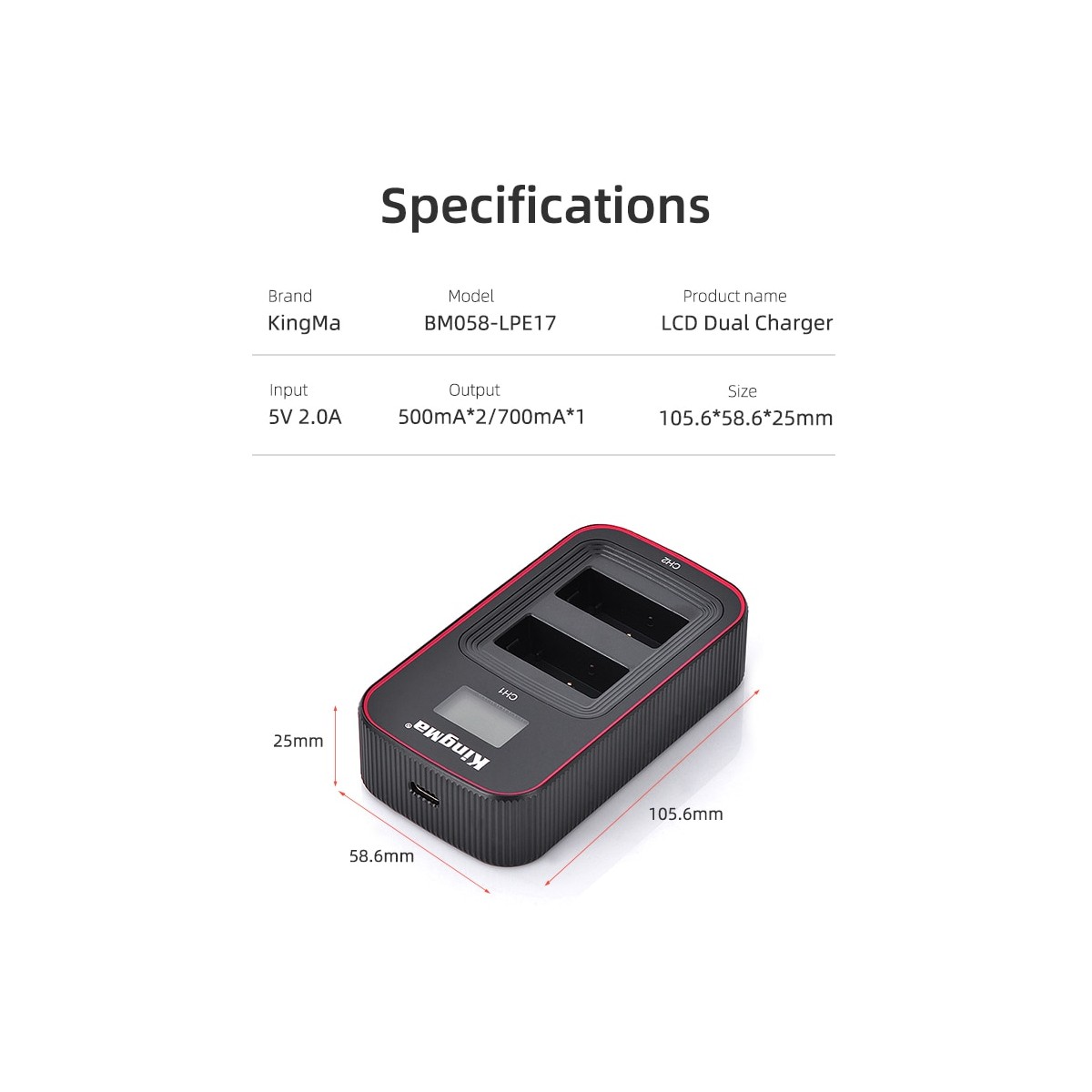 شارژر باتری Kingma مناسب برای شارژ دو باتری LP-E17