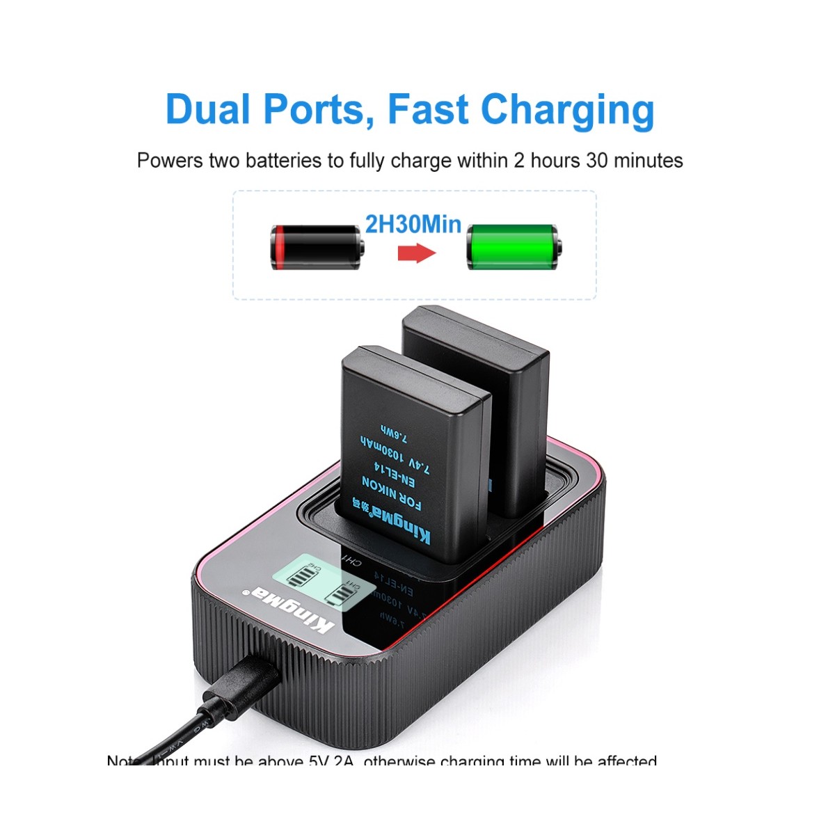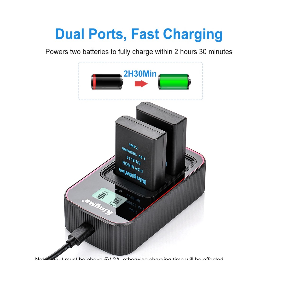 شارژر باتری Kingma مناسب برای شارژ دو باتری EN-EL14