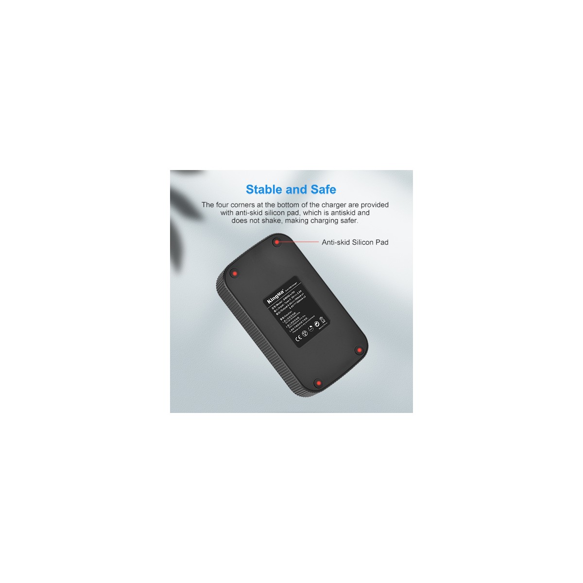 شارژر دوگانه با نمایشگر LCD: شارژر این مجموعه دارای دو درگاه شارژ است که امکان شارژ همزمان دو باتری را فراهم میکند. نمایشگر LCD وضعیت شارژ هر باتری را به صورت جداگانه نمایش میدهد و به کاربر اطلاع میدهد که باتریها در حال شارژ یا کاملاً شارژ شدهاند.