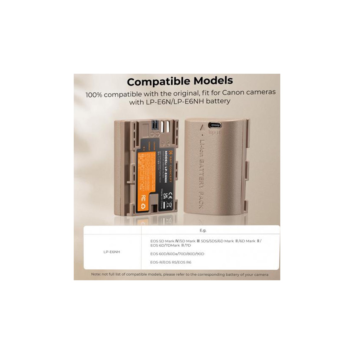 باتری K&F LP-E6NH از فناوری شارژ سریع پشتیبانی میکند که به شما امکان میدهد باتریهای خود را در زمان کوتاهتری آماده استفاده کنید. این ویژگی برای مواقعی که بهسرعت نیاز به باتریهای شارژ شده دارید، بسیار مفید است و بهرهوری شما را افزایش میدهد.
