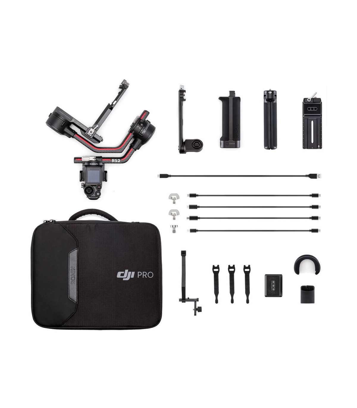 لرزشگیر RS 2 همراه با یک کیس مقاوم در برابر رطوبت عرضه میشود و دارای جایگاههایی برای قرارگیری لوازم جانبی است. همچنین همراه آن یک سهپایه کوچک نیز عرضه میشود که با استفاده از شیار ۱/۴ اینچی، به بخش زیرین گیمبال متصل میشود. این سهپایه هم میتواند بهعنوان یک استند نگهدارنده استفاده شده و هم مانند یک اکستنشن افزایش طول گیمبال مورداستفاده قرار گیرد.