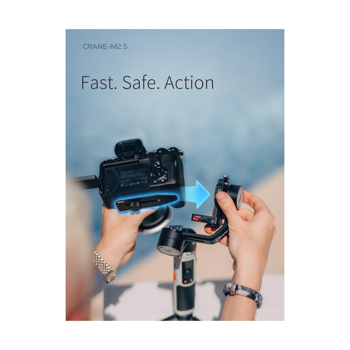 گیمبال CRANE-M2 S دارای یک صفحه آزادسازی سریع دوربین است که امکان اتصال و جداسازی دوربین را تنها با فشار دادن یک دکمه در اختیار کاربران گذاشته است. درجهبندیها قفلهای حافظهدار امکان کالیبره کردن و نگه داشتن تنظیمات مربوطه را برای دستگاههای مختلف فراهم کرده است. نور داخلی موجود بر روی گیمبال دارای استاندارد CRI مثبت ۹۰، هزار لومن روشنایی، ۵ درجه مختلف روشنایی و چهار فیلتر رنگی است.