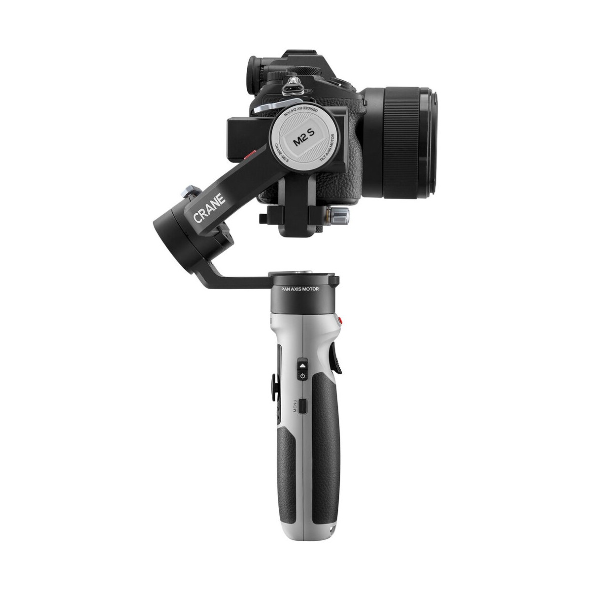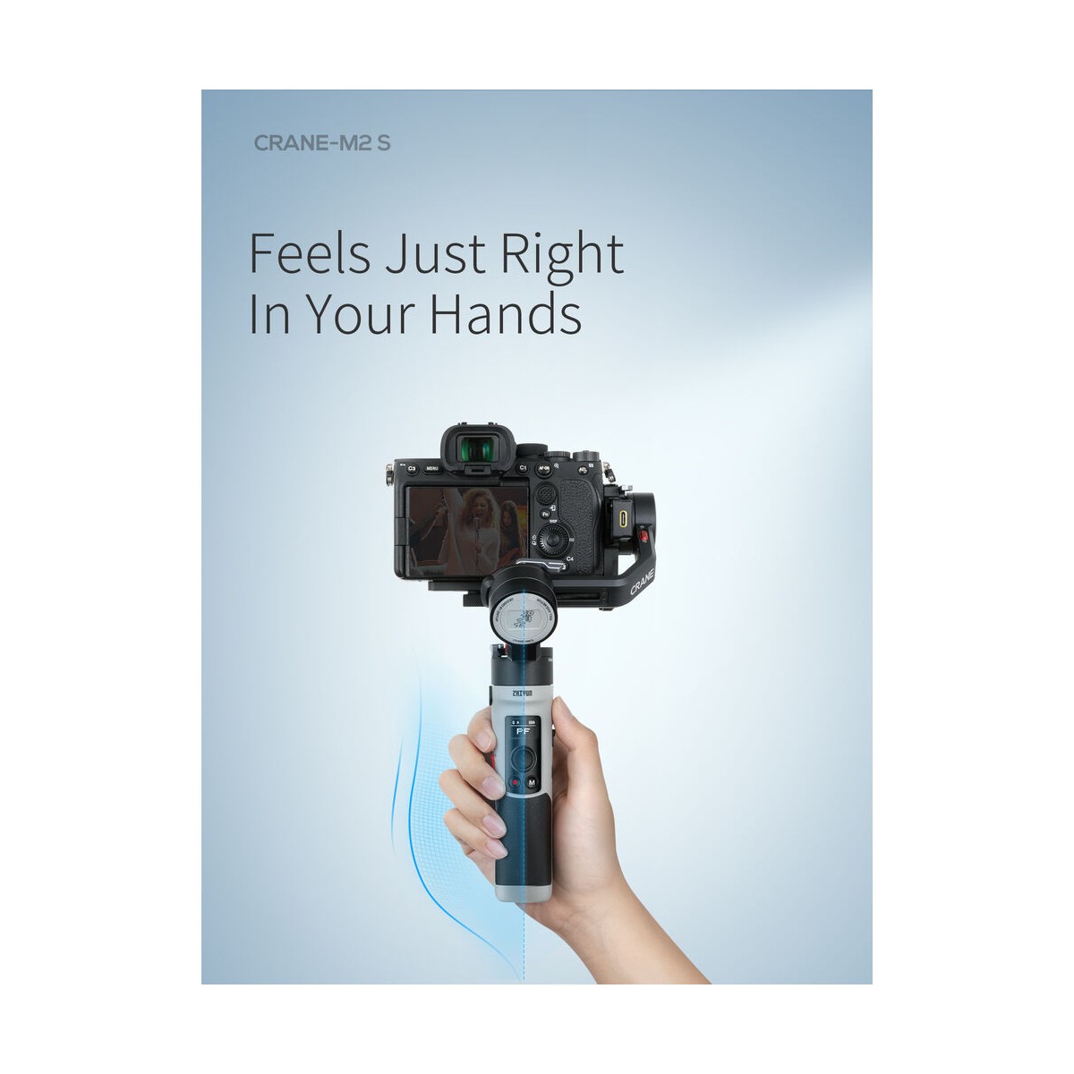 گیمبال Crane-M2 S قابلیت تغییر زاویهها و چرخش ۳۶۰ درجه در محور افق، ۳۲۰ درجه خم شدن و ۳۲۰ درجه حرکت از کنارهها را دارد. با هر بار شارژ کامل تا ۱۰.۵ ساعت به صورت تقریبی امکان استفاده از گیمبال فراهم میشود. با اتصال دوربین همراه با سیم هم دوربین از طریق باتری گیمبال شارژ میشود و هم کنترلهایی از قبیل زوم، شاتر و شروع/پایان فیلمبرداری دوربین از روی گیمبال قابل استفاده خواهد بود. همچنین میتوان حرکت گیمبال را با استفاده از اپلیکیشن ZY Play که هم برای سیستم عامل اندروید و هم برای سیستم عامل iOS توسعه داده شده است، کنترل کرد، لازم به ذکر است که با استفاده از این اپلیکیشن قابلیتهای جدیدی نیز به گیمبال اضافه خواهد شد.