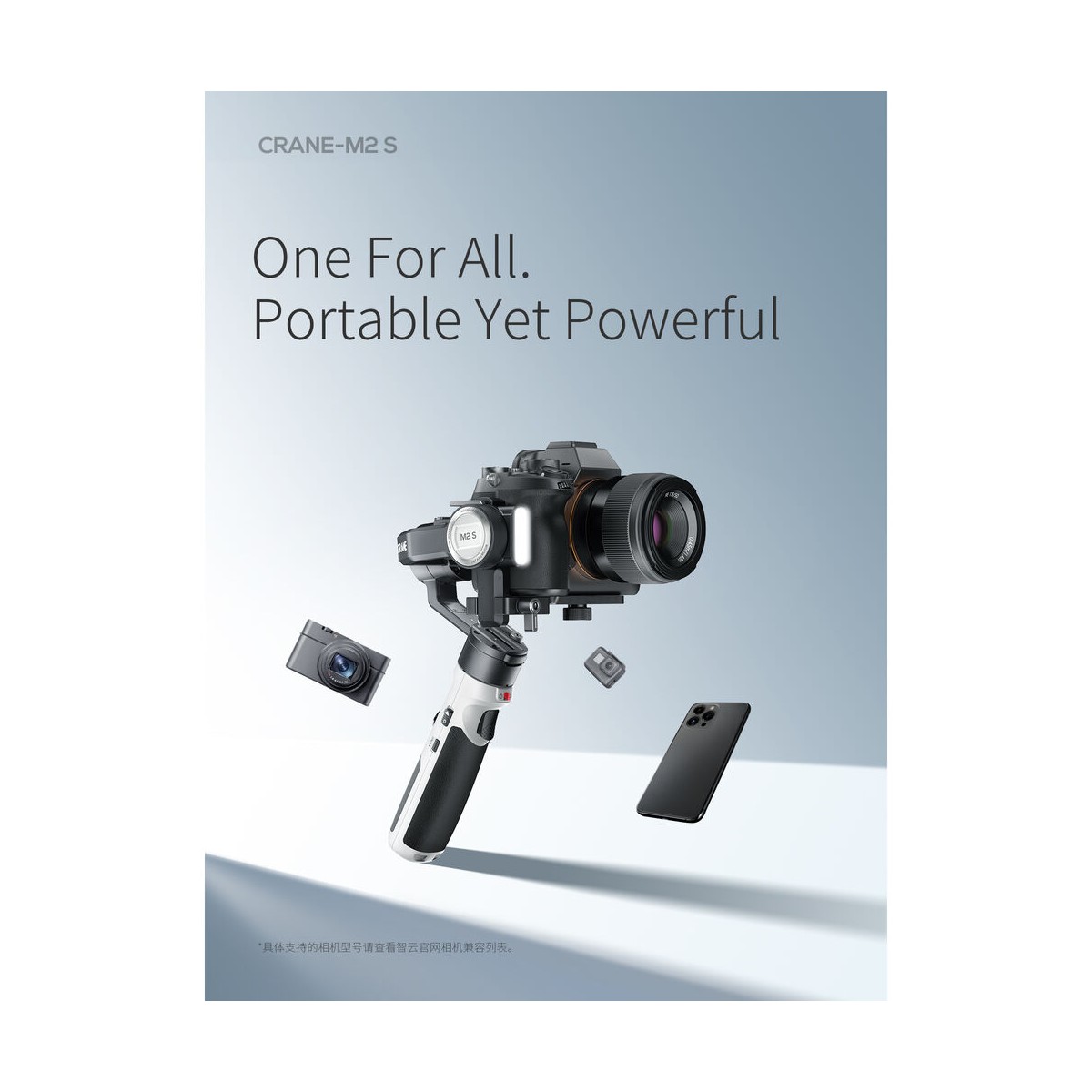 گیمبال CRANE-M2 S یک گیمبال سه محوره ساخته شده توسط شرکت ژیون تک است که قدرت بیشتری نسبت به نمونههای قبلی خود دارد و برای دوربینهای کامپکت، گوشیهای هوشمند و دوربینهای ورزشی تا حداکثر وزن یک کیلوگرم طراحی شده است. گیمبال M2 S دارای تمام قابلیتهای گیمبال M2 و ویژگیهای جدیدی از جمله تحمل وزن بیشتر، دوام باتری بیشتر، شارژ سریع PD، دستگیره کوچکتر، طراحی ظاهری جدید، پشتیبانی از بلوتوث ورژن ۵، صفحه آزادسازی دوربین جدید و نور داخلی است.