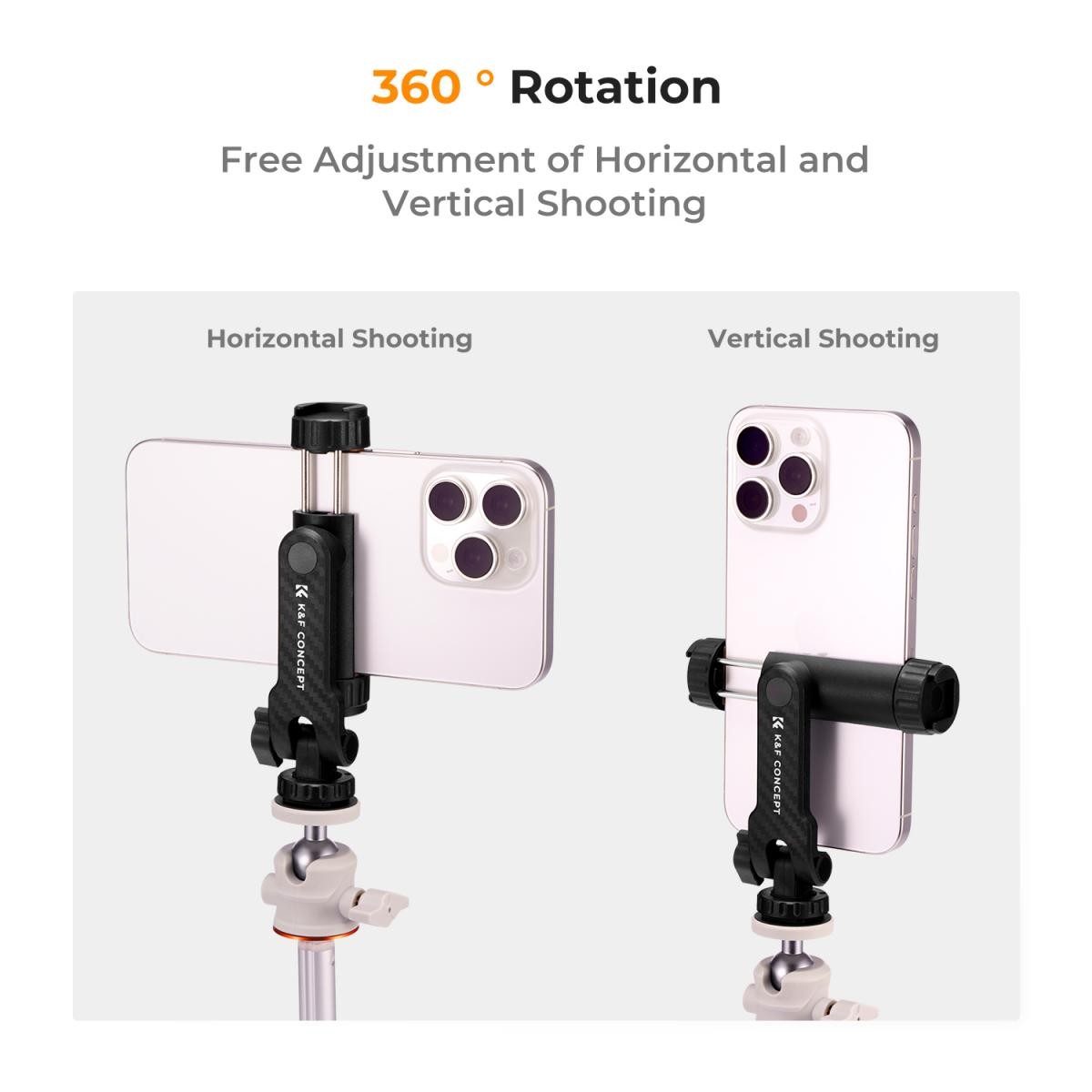 گیره موبایل برای سه پایه و دوربین کی اند اف | K&F Cell Phone Holder Clamp With Two Cold Shoe Mount 360° Adjustment