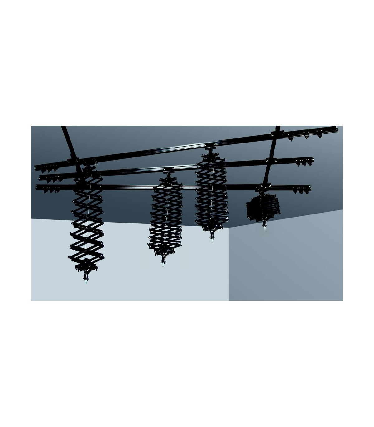 این سیستم پانتوگراف دارای پنج ریل و چهار فانوسی است. دو ریل روی سقف نصب میشوند و سه ریل دیگر روی دو ریل سقفی حرکت میکنند. هر فانوسی تا طول حدود 2 متر باز میشود. اندازهی هر فانوسی در حالت بسته حدود 40سانتیمتر است. طول هر ریل حدود 3 متر است که میتوان آنها را برای استفادههای گوناگون کوتاه نمود. با توجه به متغیر بودن تولیدکنندهی پانتوگراف ممکن است لوازم اضافی دیگری (مانند میلهی تنظیم ارتفاع پانتوگراف) بههمراه محصول ارائه شوند و یا مقادیر با مقدارهای ذکرشده تفاوت داشته باشند. برای اطلاعات بیشتر با فروشگاه تماس بگیرید.