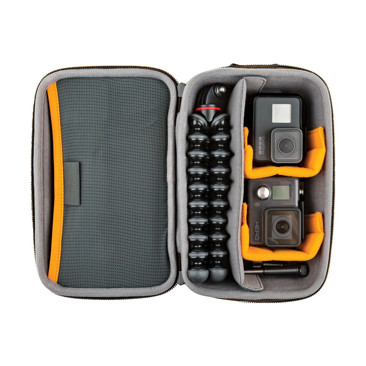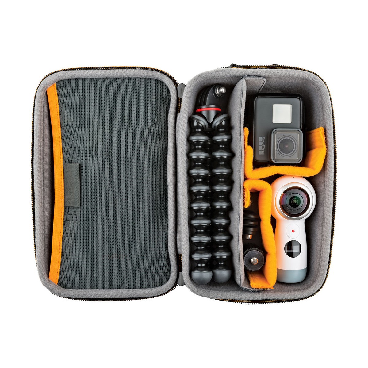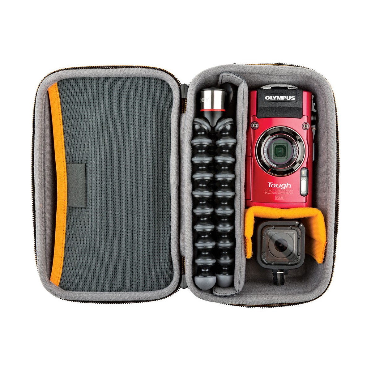 کیس دوربین CS 60 لوپرو یک کیس با استحکام بالا است که فضای داخلی آن پوشیده شده از پارچه بسیار نرم است که بدنه دوربین در اثر سایش دچار آسیب نشود. از این کیس میتوان برای نگهداری و حمل یک دوربین ورزشی به همراه سهپایه کوچک و سایر لوازم جانبی و یا یک دوربین بدون آینه به همراه دو لنز اضافی استفاده کرد. در ساختار این کیس از پلاستیک EVA استفاده شده است که مقاومت بالایی را در برابر ضربه فراهم کرده است. محفظه این کیس دارای دو سر زیپ است که در اثر وجود آنها و طراحی صدفی تاشو، دسترسی آسانی به داخل محفظه کیس فراهم شده است. یک جیب کشی نیز در داخل کیس وجود دارد که میتوان از آن برای نگهداری از باتری، مموری کارت، کابلها و یا سایر لوازم کوچک استفاده کرد.