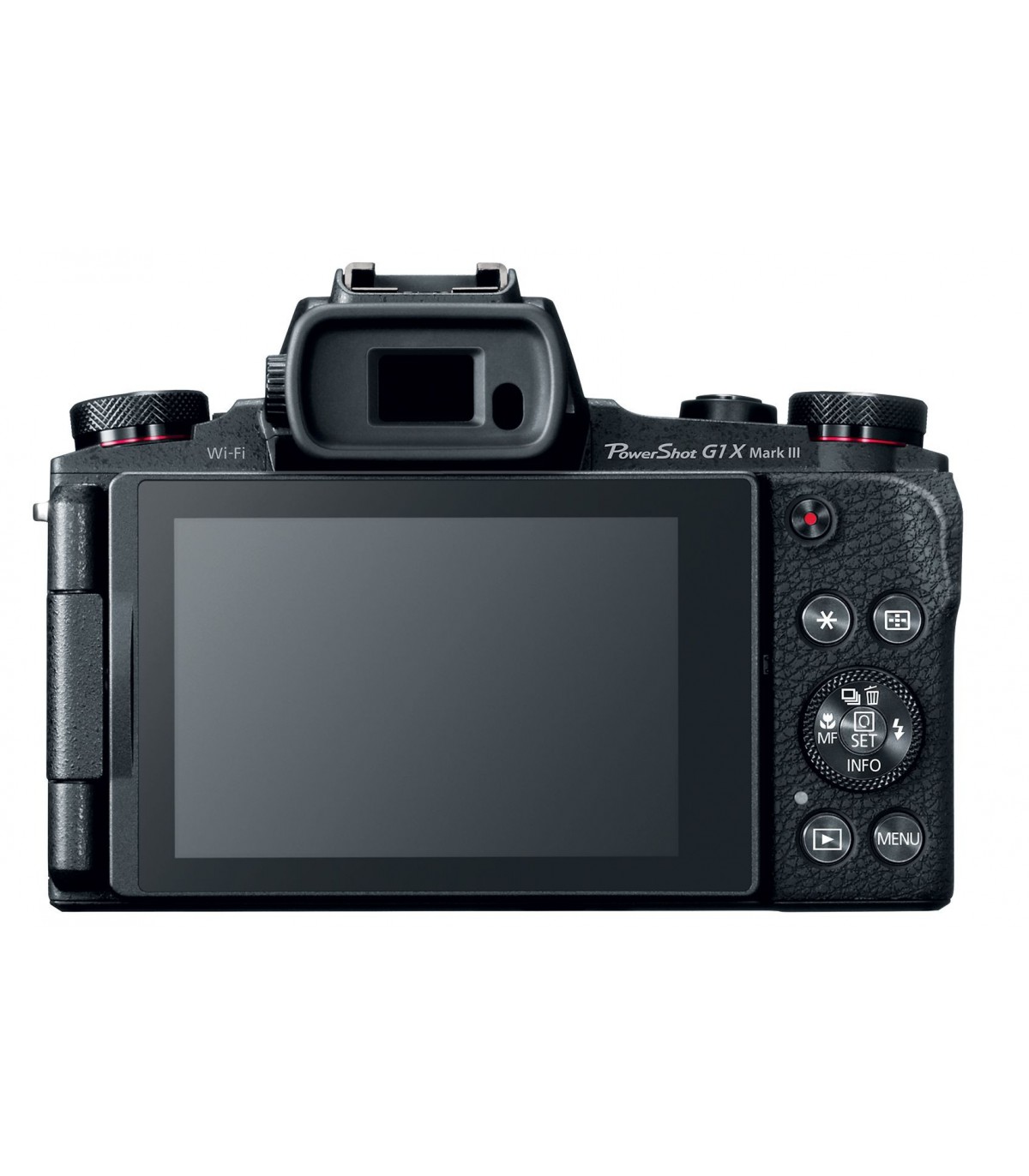 آنچه  G1 X Mark IIIرا بیش از هر دوربین کامپکت دیگری شبیه به یک DSLR می‌سازد، وجود منظره یاب الکترونیک بسیار باکیفیت و همچنین یک صفحه‌نمایش ۳ اینچی لمسی است. این صفحه‌نمایش قابلیت چرخش در همه جهات را داراست و همچنین می‌توان با لمس سوژه روی آن فوکوس کرد. وجود فوکوس Dual Pixel نیز تا حد زیادی به دقت و سرعت فوکوس خودکار می‌افزاید.