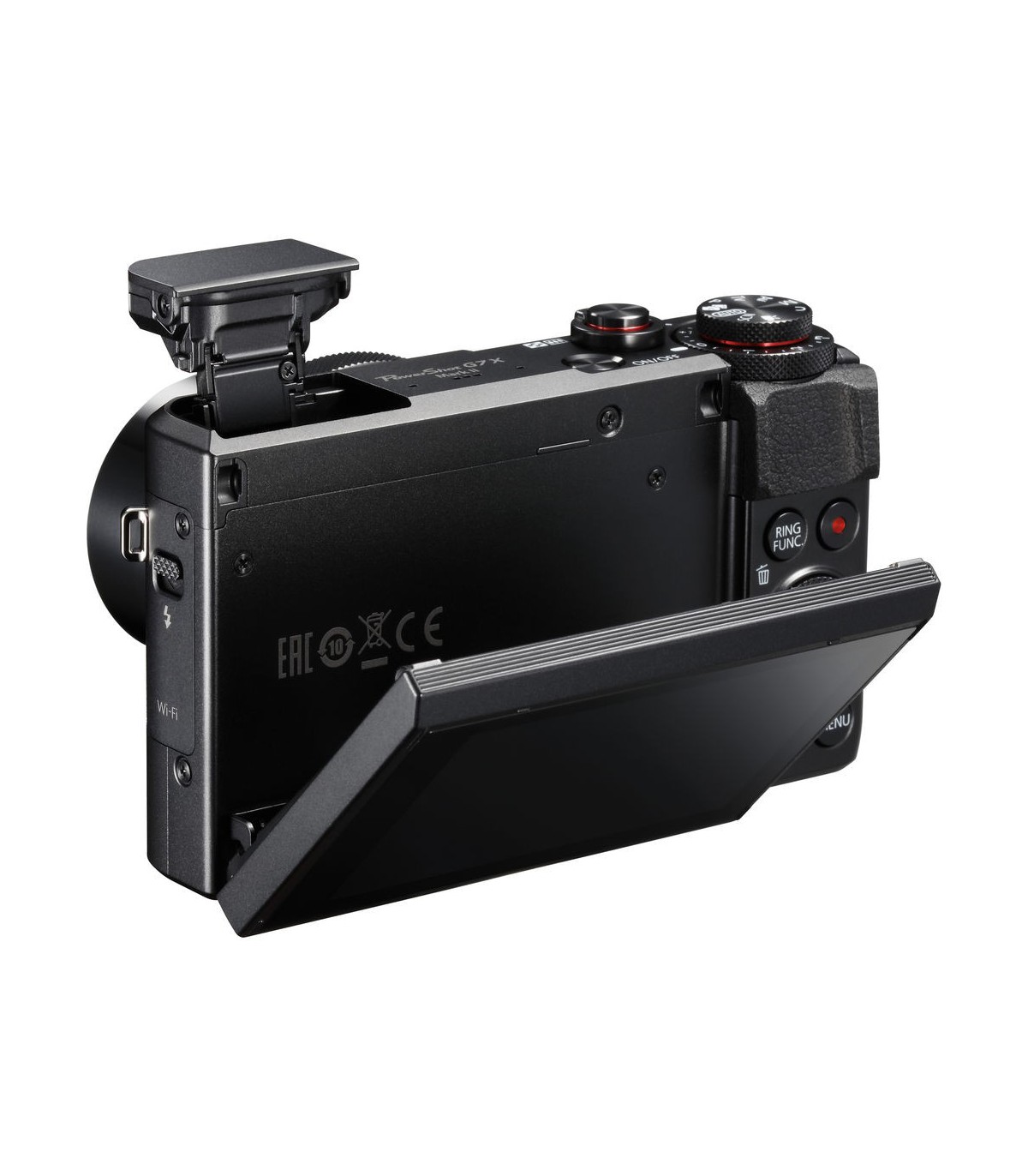 لنز قرار گرفته بر روی این دوربین توسط یک رینگ کنترل احاطه داشته که کنترل تنظیمات لنز را به مراتب آسانتر و لذتبخشتر میکند. G7 X Mark II به یک صفحه نمایش لمسی ۳ اینچی از نوع LCD مجهز گردیده که از دقت نمایش ۱٫۰۴ میلیون نقطه بهرهمند است. این نمایشگر از نوع متحرک بوده که امکان عکاسی در زوایای تنگ را ممکن کرده و برای گرفتن عکسهای سلفی بسیار کاربردی است. همچنین مطابق انتظار شاهد وجود فناوریهای NFC و وایفای داخلی در این دوربین هستیم که به واسطه آن میتوان عکسها یا ویدئوهای گرفته شده را به آسانی به صورت بیسیم میان دوربین، گوشی یا تبلت تبادل کرده و از طریق موبایل کنترل برخی تنظیمات دوربین را در دست گرفت.