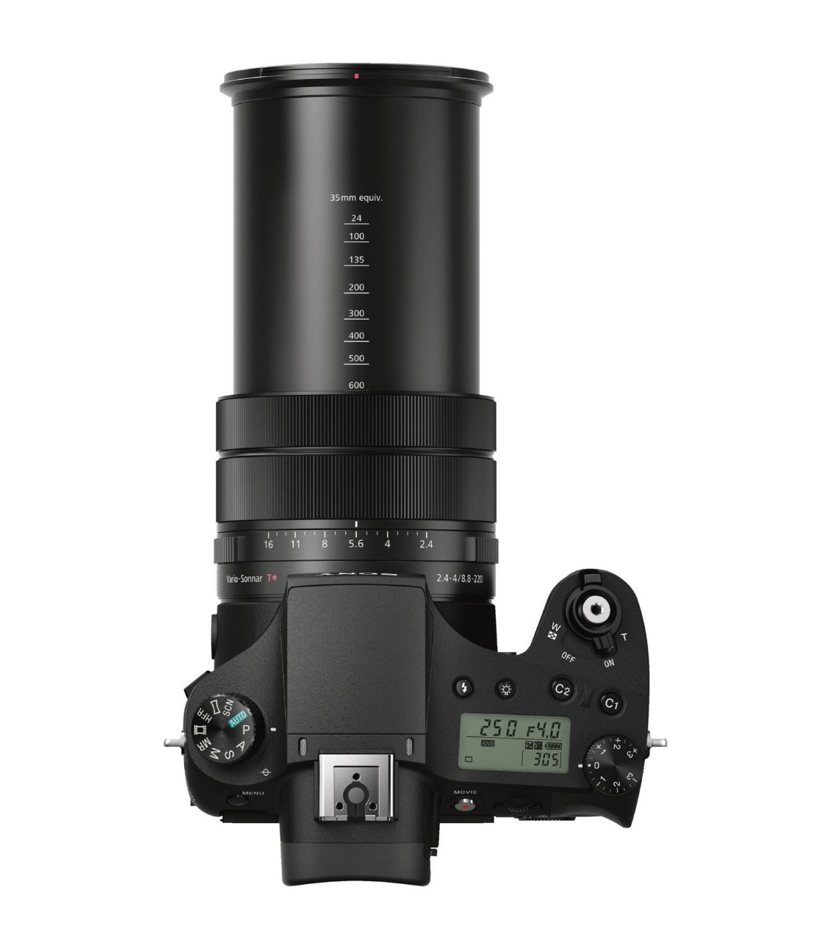سیستم فوکوس، سنسور باکیفیت و پردازندهی قدرتمند این دوربین با لنز Vario-Sonnar T ساخت Zeiss تکمیل میشوند. این لنز دارای فاصلهی کانونی معادل 600-24 میلیمتر و گشودگی دیافراگم f/2.4-4 است. بهاینترتیب عملکردی سریع را در تمامی بازهی کانونی در اختیار کاربر قرار میدهد.